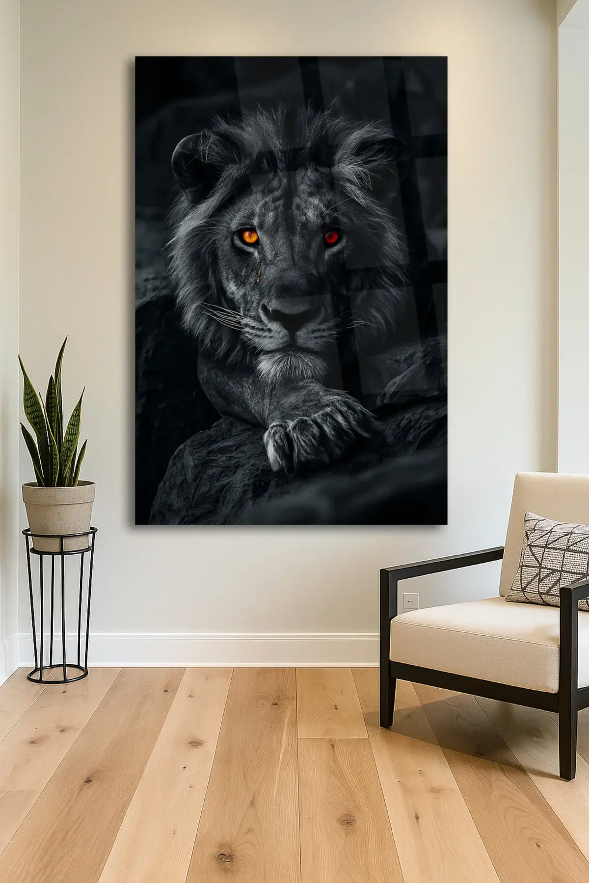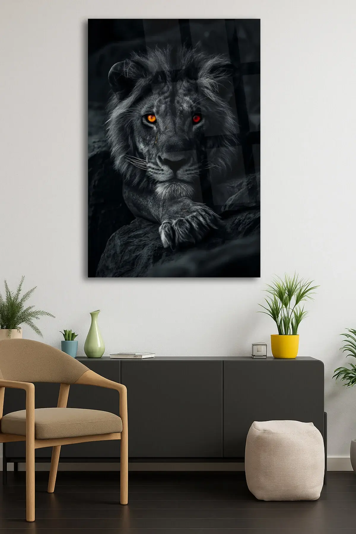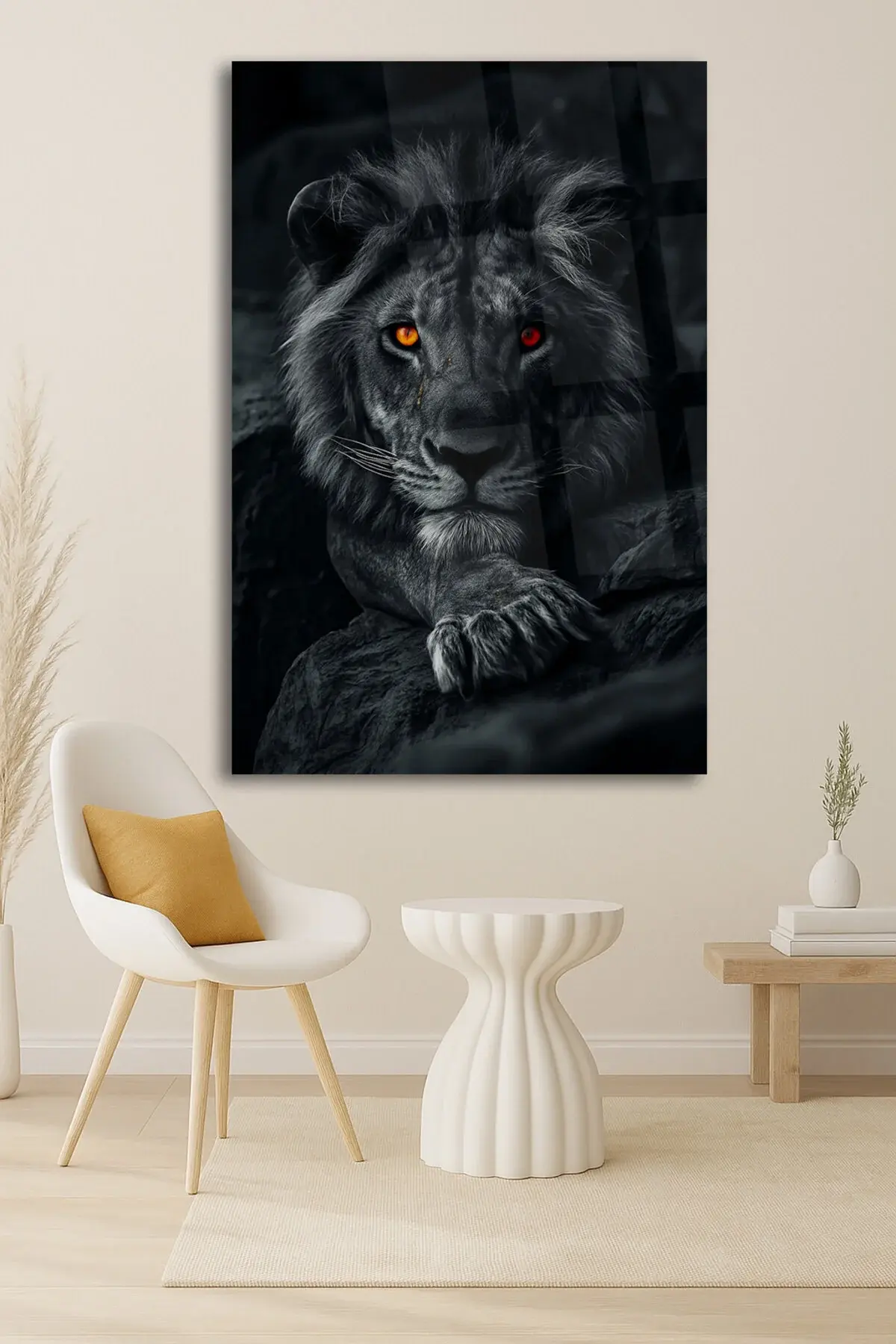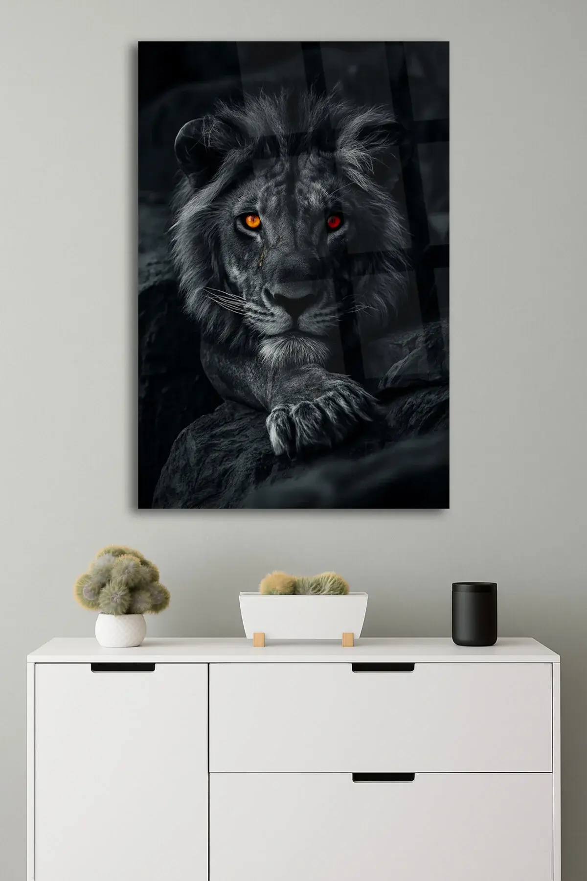SARI KIRMIZI ASLAN TABLOSU KIRILMAZ LÜKS CAM TABLO TABLO MODERN TABLO EV İŞ YERİ HEDİYESİ Siyah