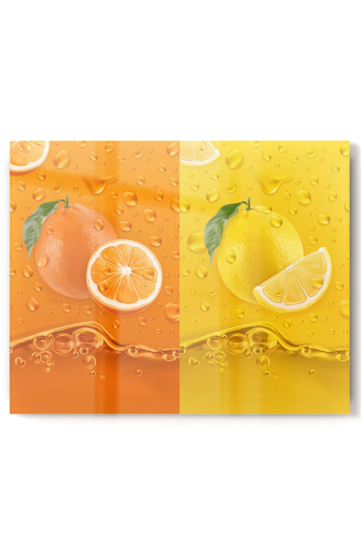 Sarı,Turuncu - Premium Mutfak Cam Ocak Arkası Koruyucu Tezgah Ankastre Arkası Koruyucu | Portakal Limon