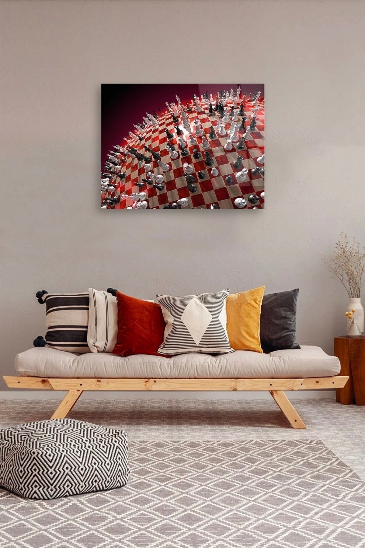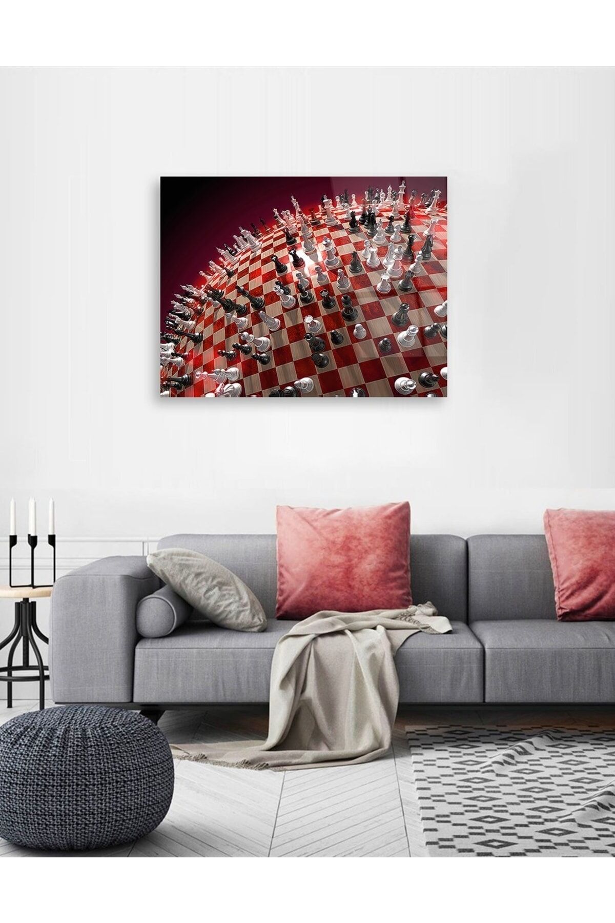 Satranç Taşları Cam Tablo Renkli