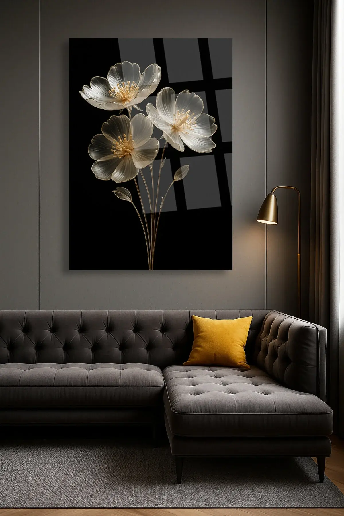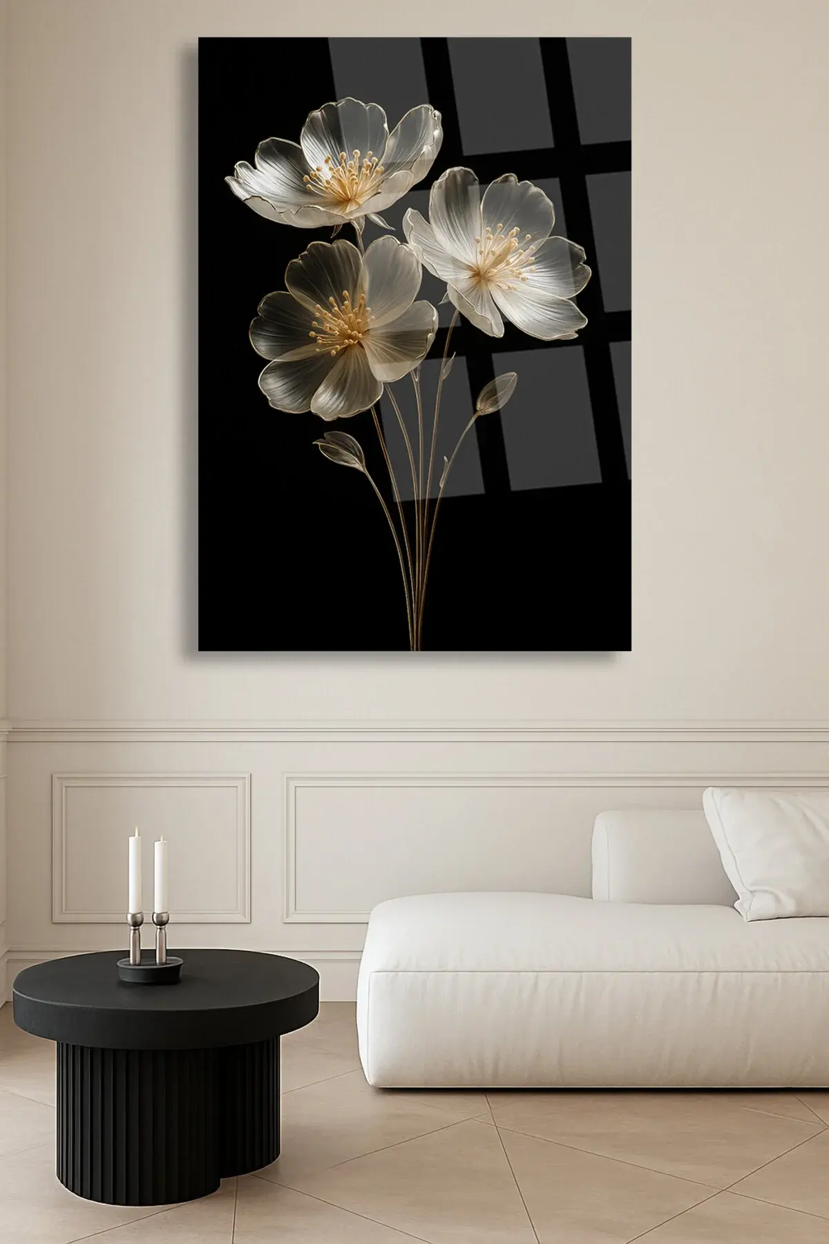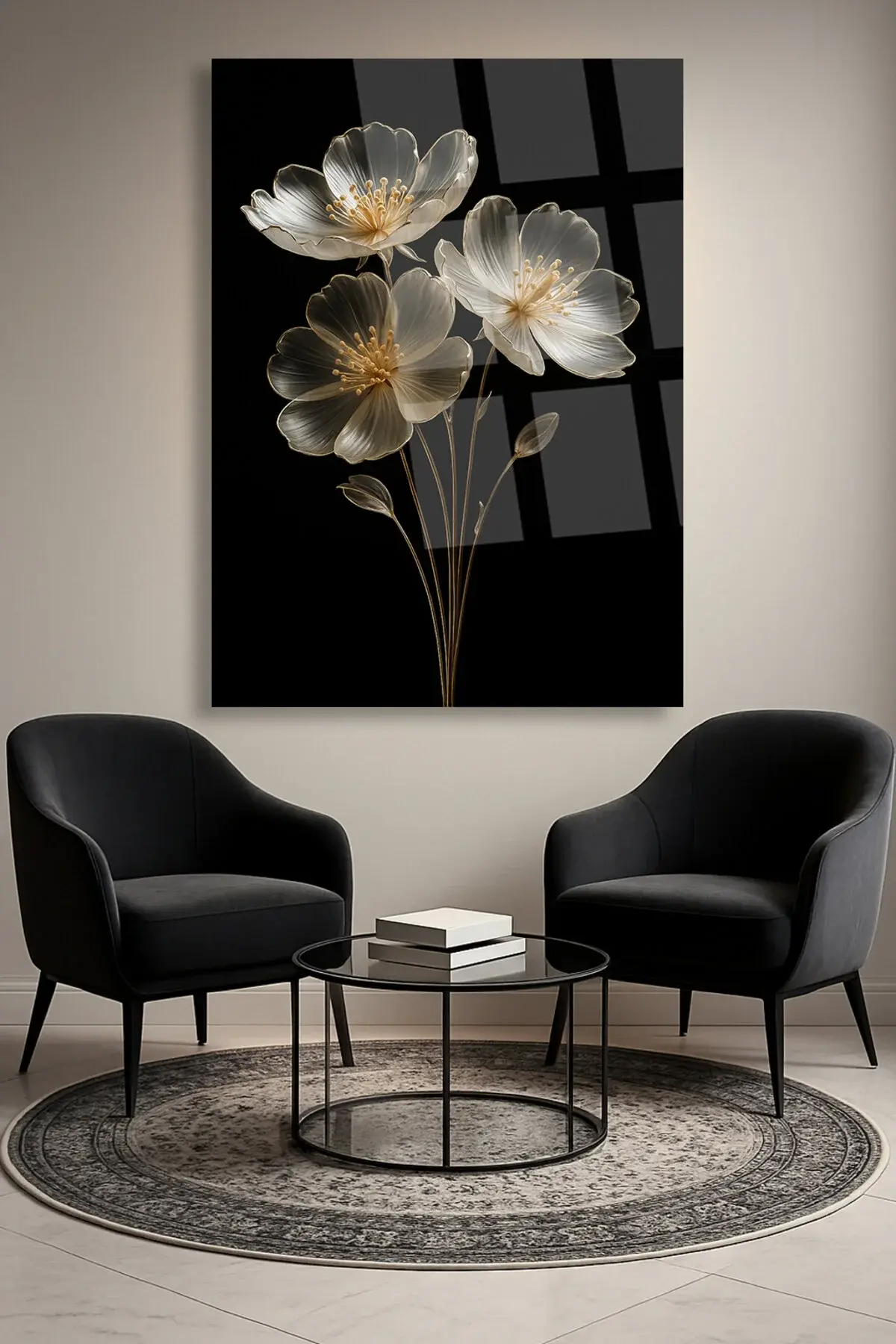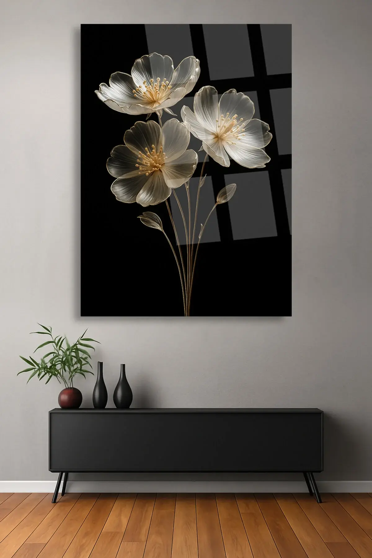 SAYDAM ELMAS ÇİÇEK TASARIMI ULRTA CANLI RENKLER KIRILMAZ LÜKS MODERN CAM TABLO EV HEDİYESİ Siyah