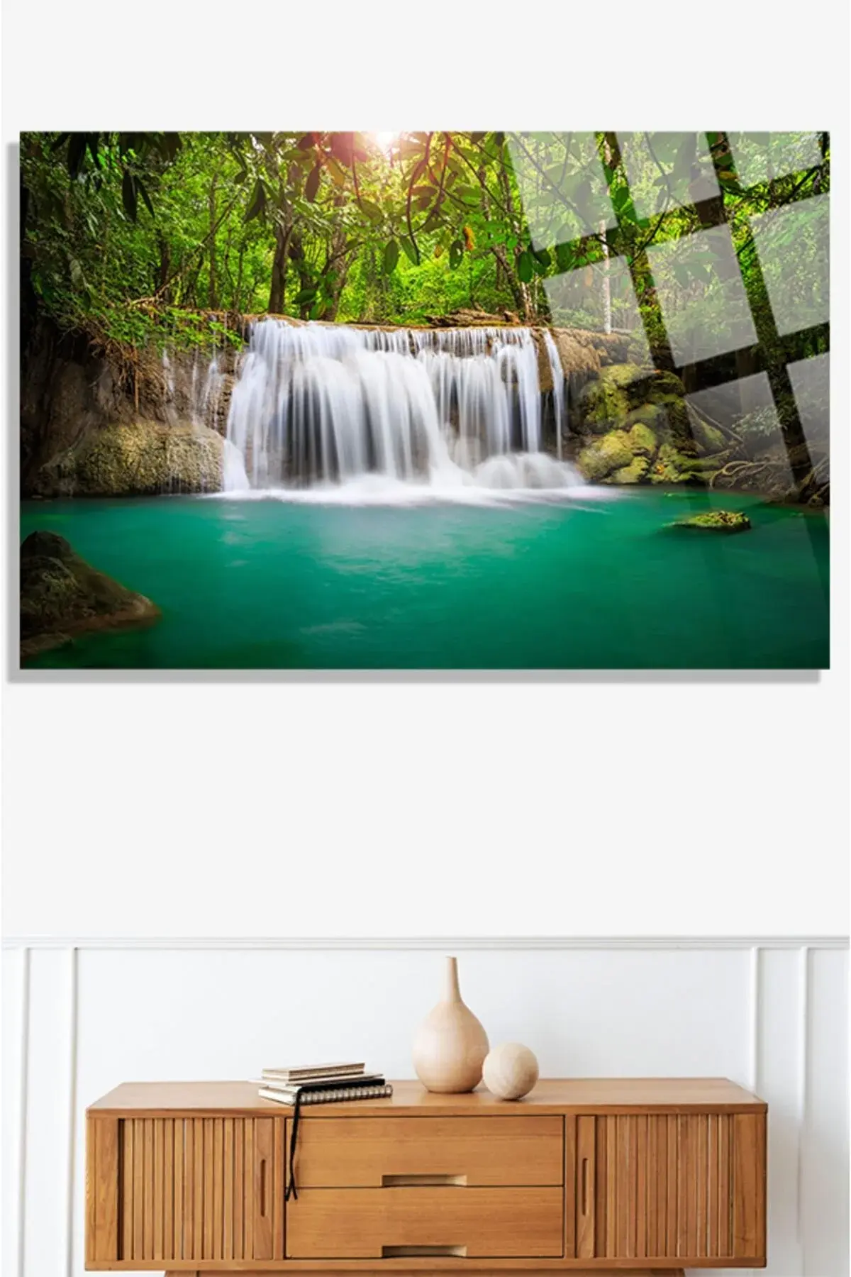 Şelale Manzarası Cam Tablo, Ev Ve Ofis Hediyesi Yüksek Çözünürlüklü 4mm Lüks Tablo