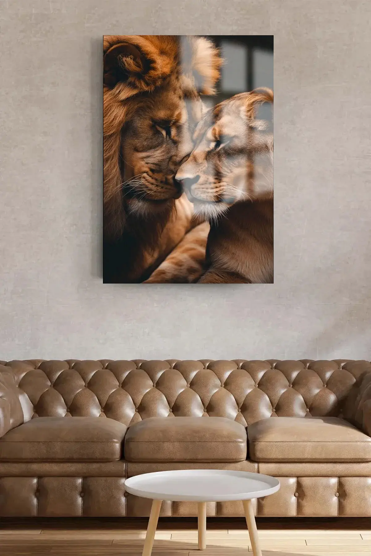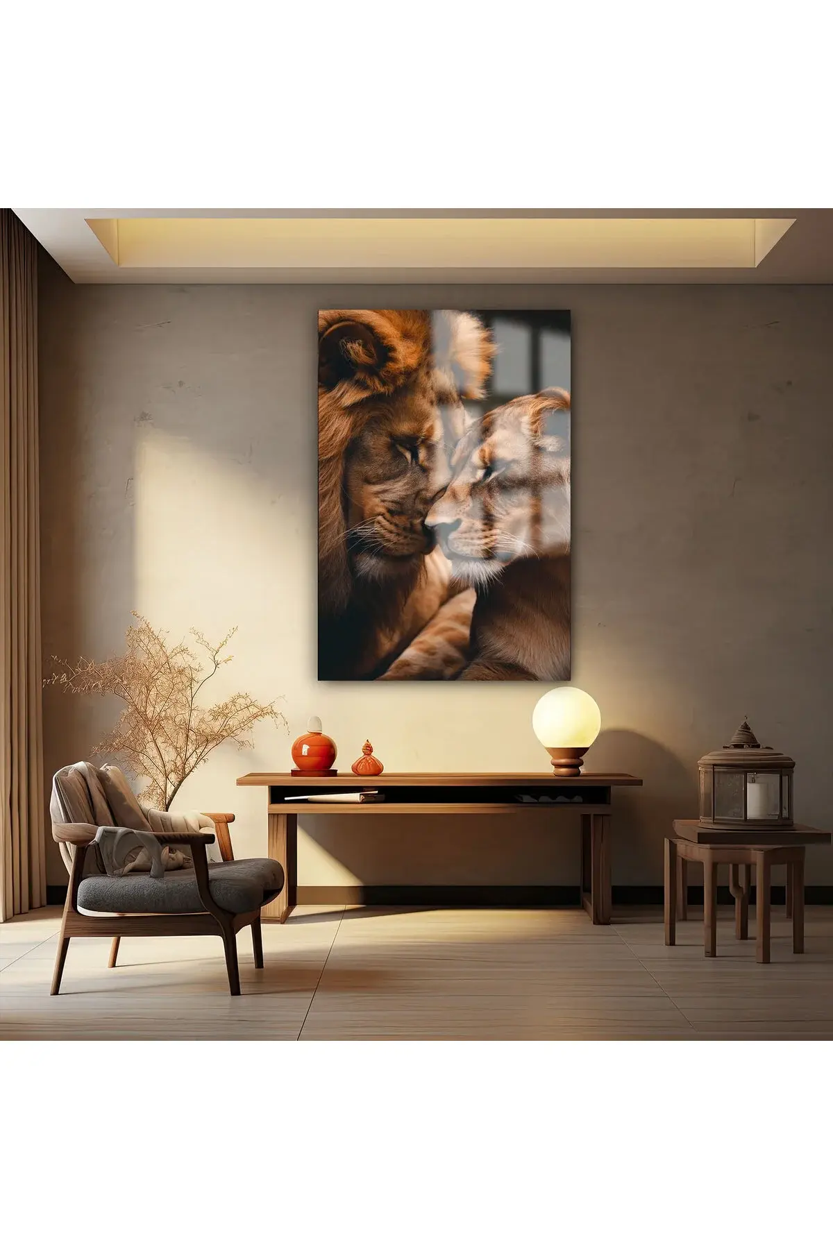 SEVGİLİ ASLANLAR ASLAN AİLESİ TABLOSU EV HEDİYESİ KIRILMAZ LÜKS MODERN CAM TABLO Sarı