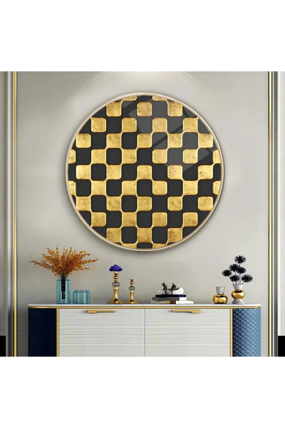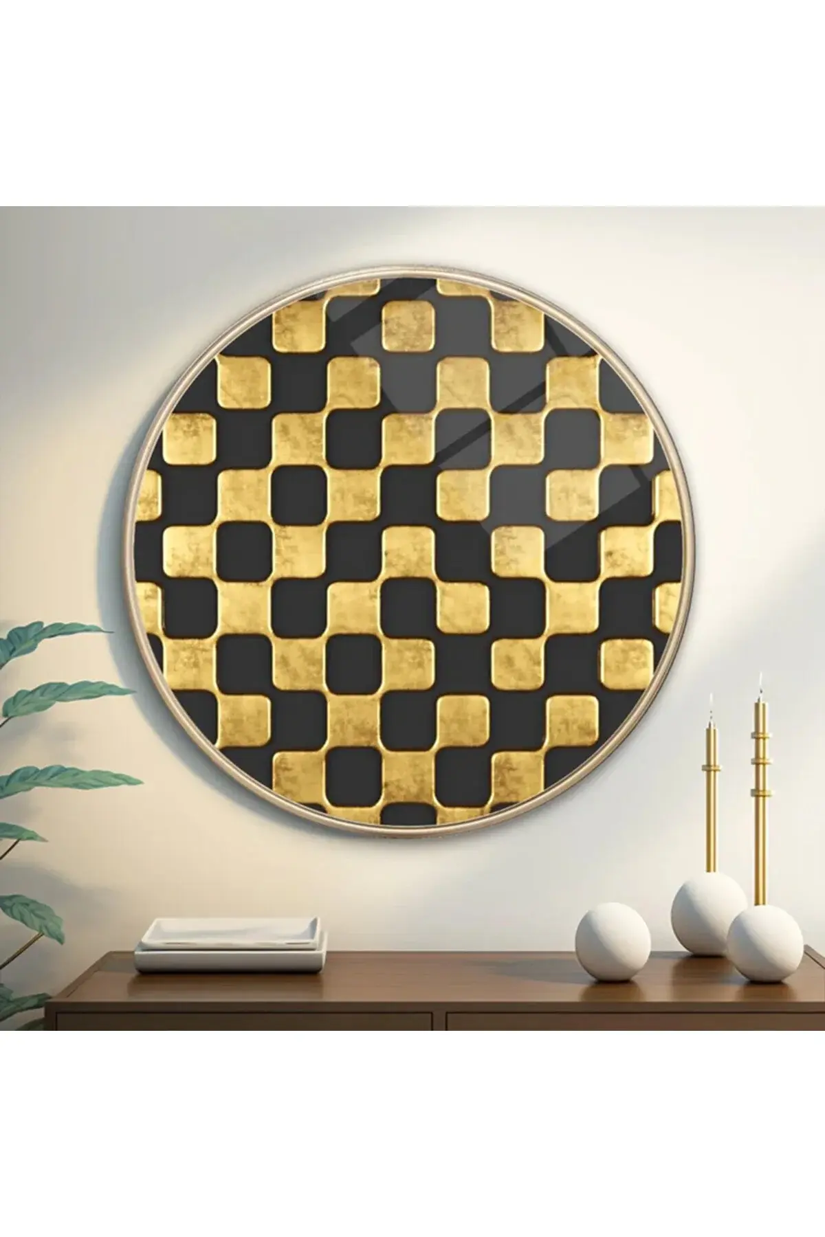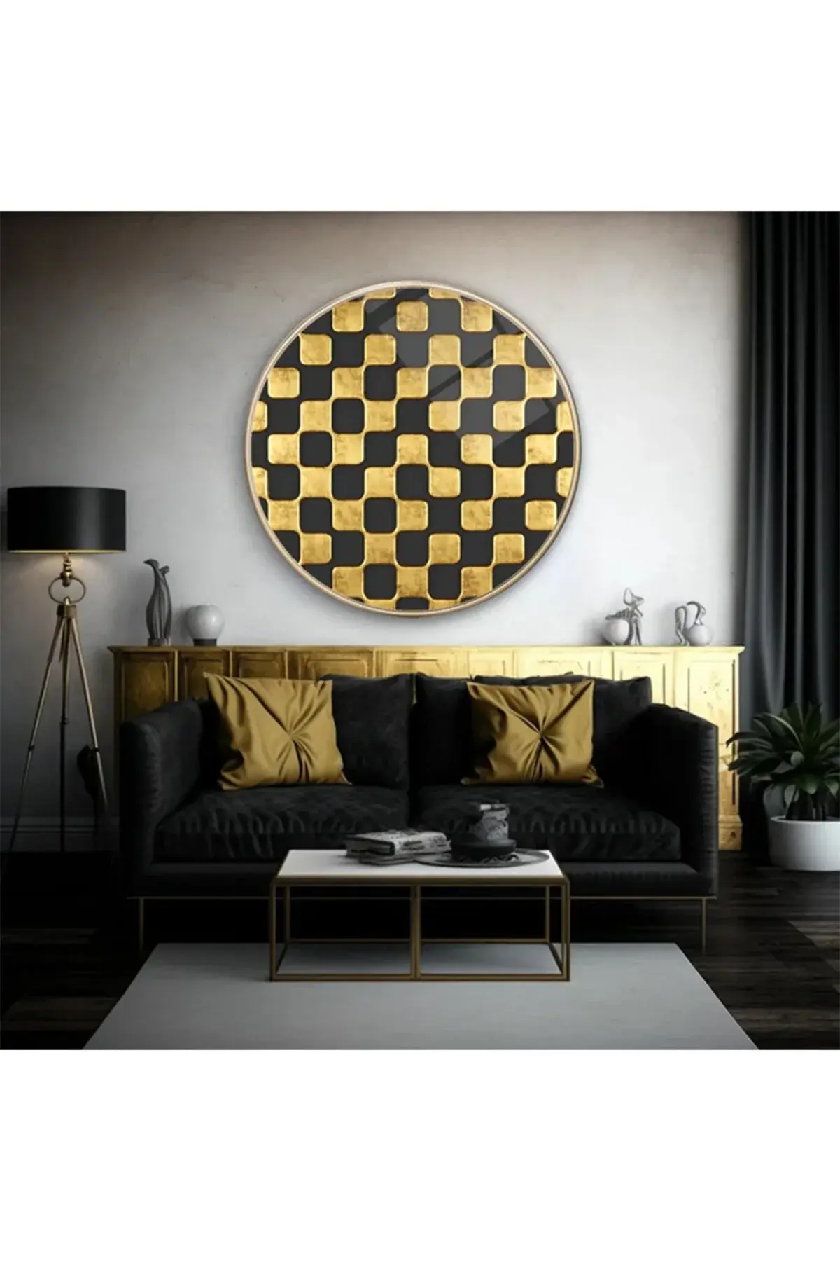 SİMETRİK DESEN MODERN KIRILMAZ LÜKS YUVARLAK CAM TABLO MODERN HEDİYE TABLO Siyah