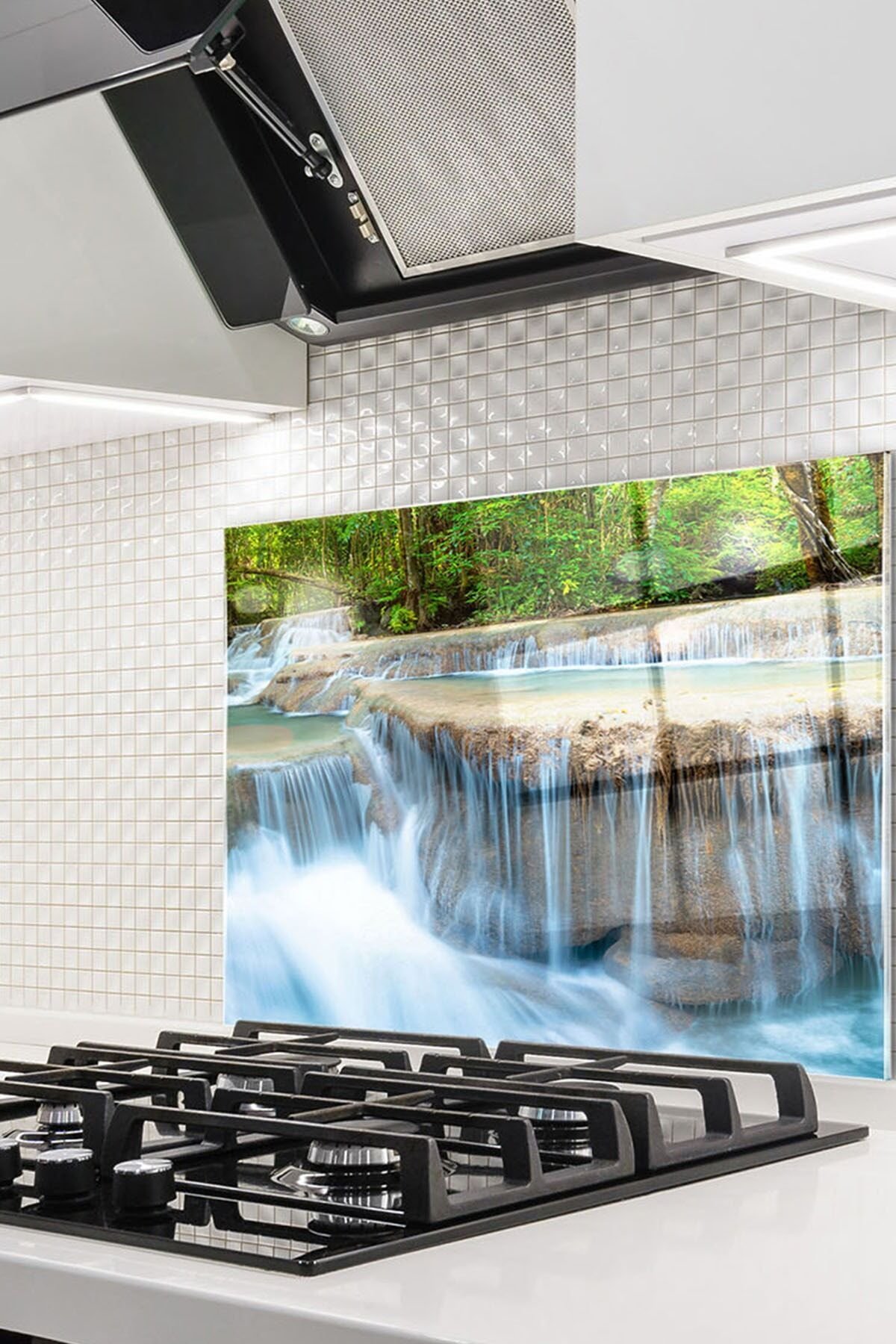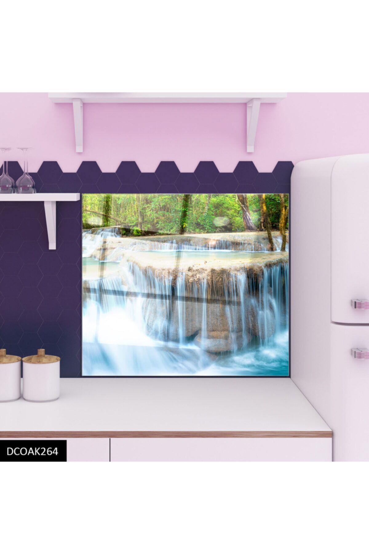 siyah - 60x52 Cm Cam Ocak Arkası Koruyucu Tezgah Ankastre Arkası Koruyucu | Şelale