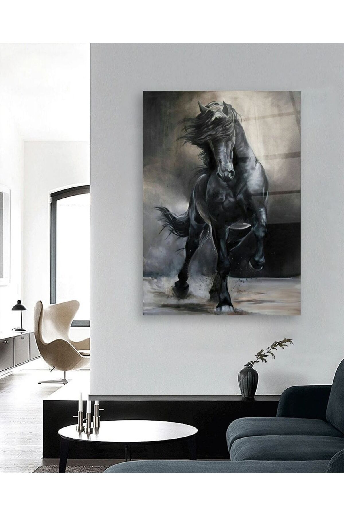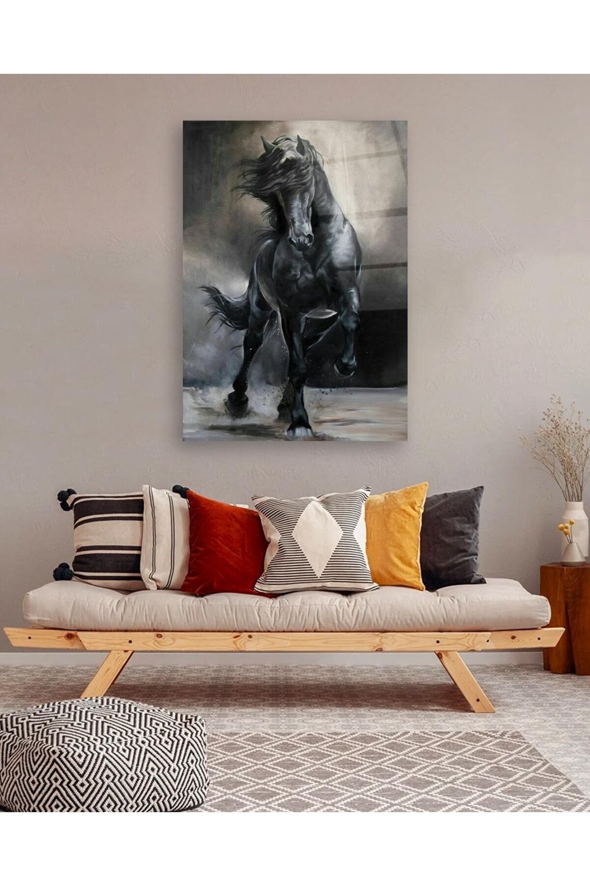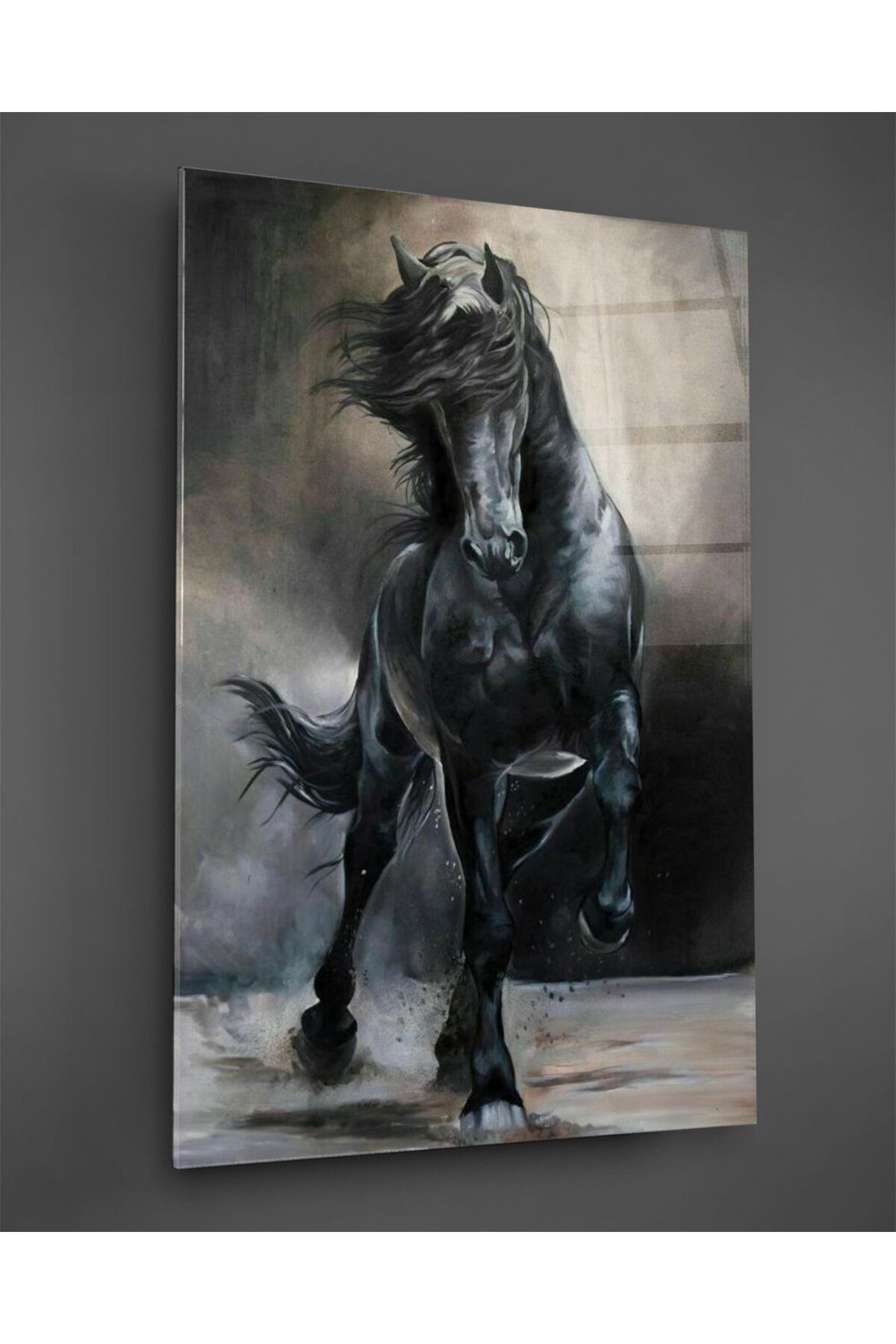 Siyah At Cam Tablo Renkli