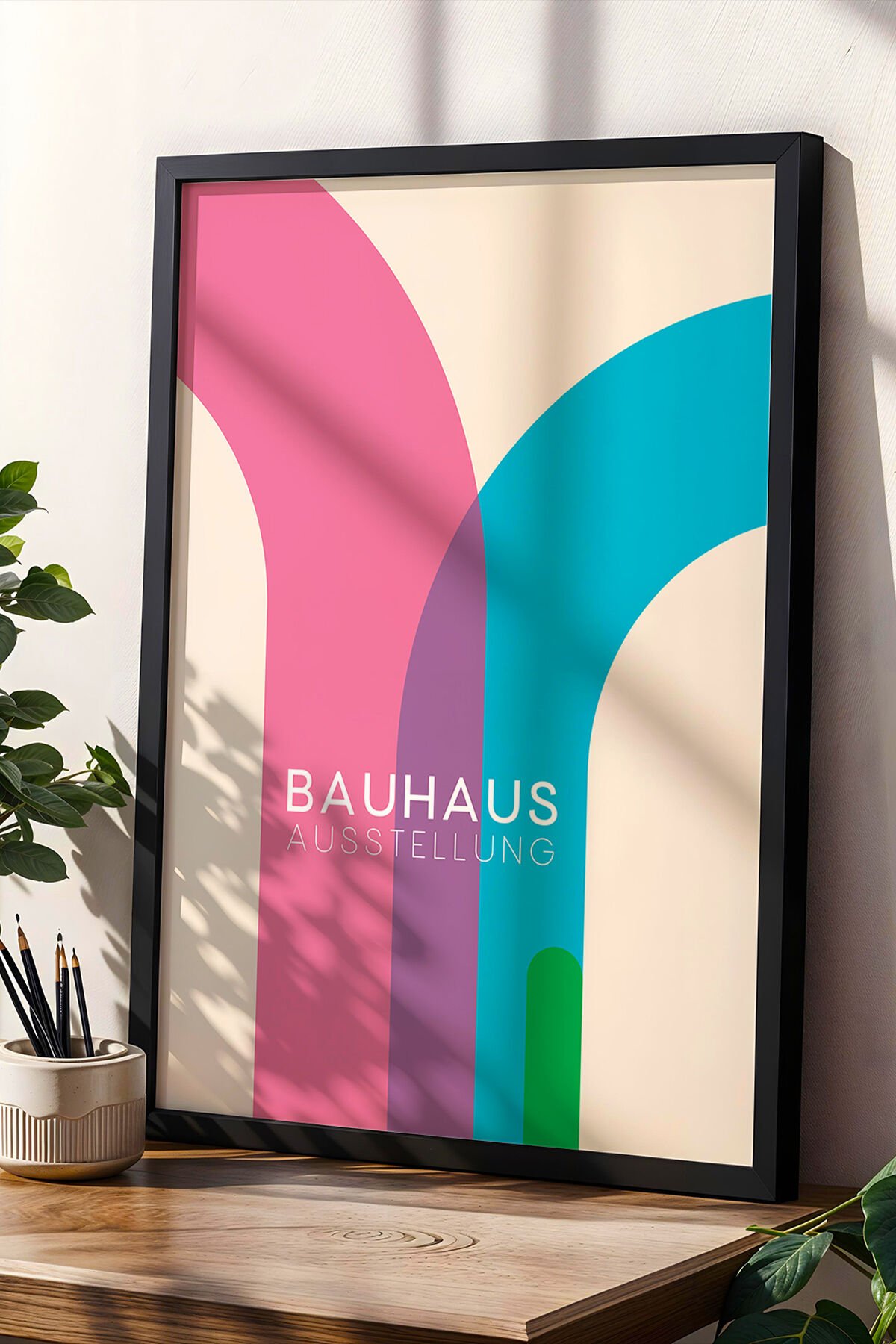 SİYAH - Bauhaus Stili Karışık Renkli Vintage Geometrik Sanat Ahşap Çerçeveli Duvar Tablosu