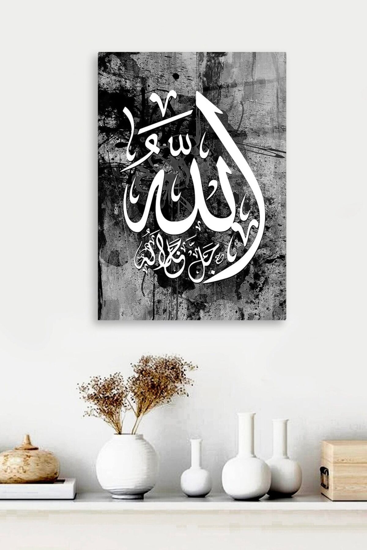 Siyah Beyaz Allah Yazısı Cam Tablo Renkli