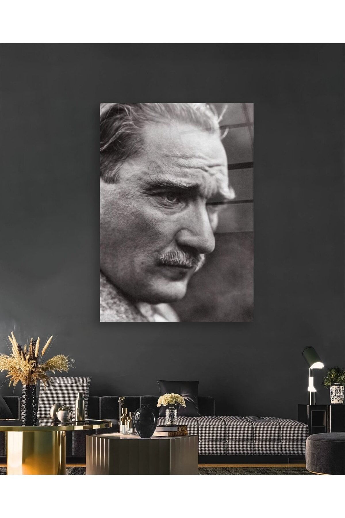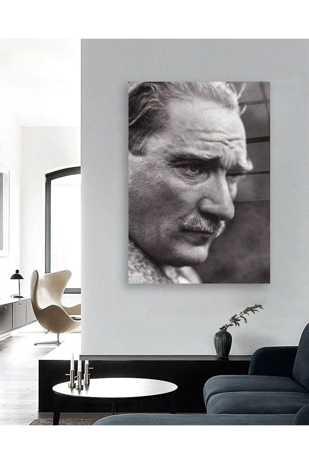 Siyah Beyaz Atatürk Portresi Cam Tablo Siyah Beyaz