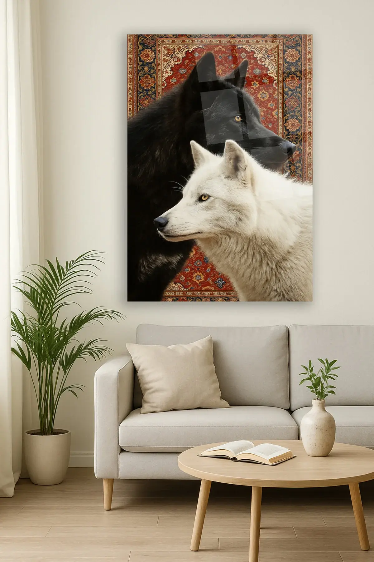 SİYAH BEYAZ KURT GÖRSELİ CAM TABLO KURT AİLESİ CAM TABLO EV HEDİYESİ SEVGİ TEMALI TABLO Kırmızı