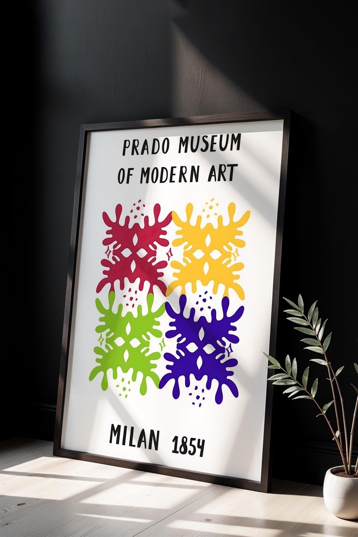 SİYAH - Botanik Serisi Canlı Renkli Çiçekli Matisse Doğal Ahşap Çerçeveli Duvar Tablosu
