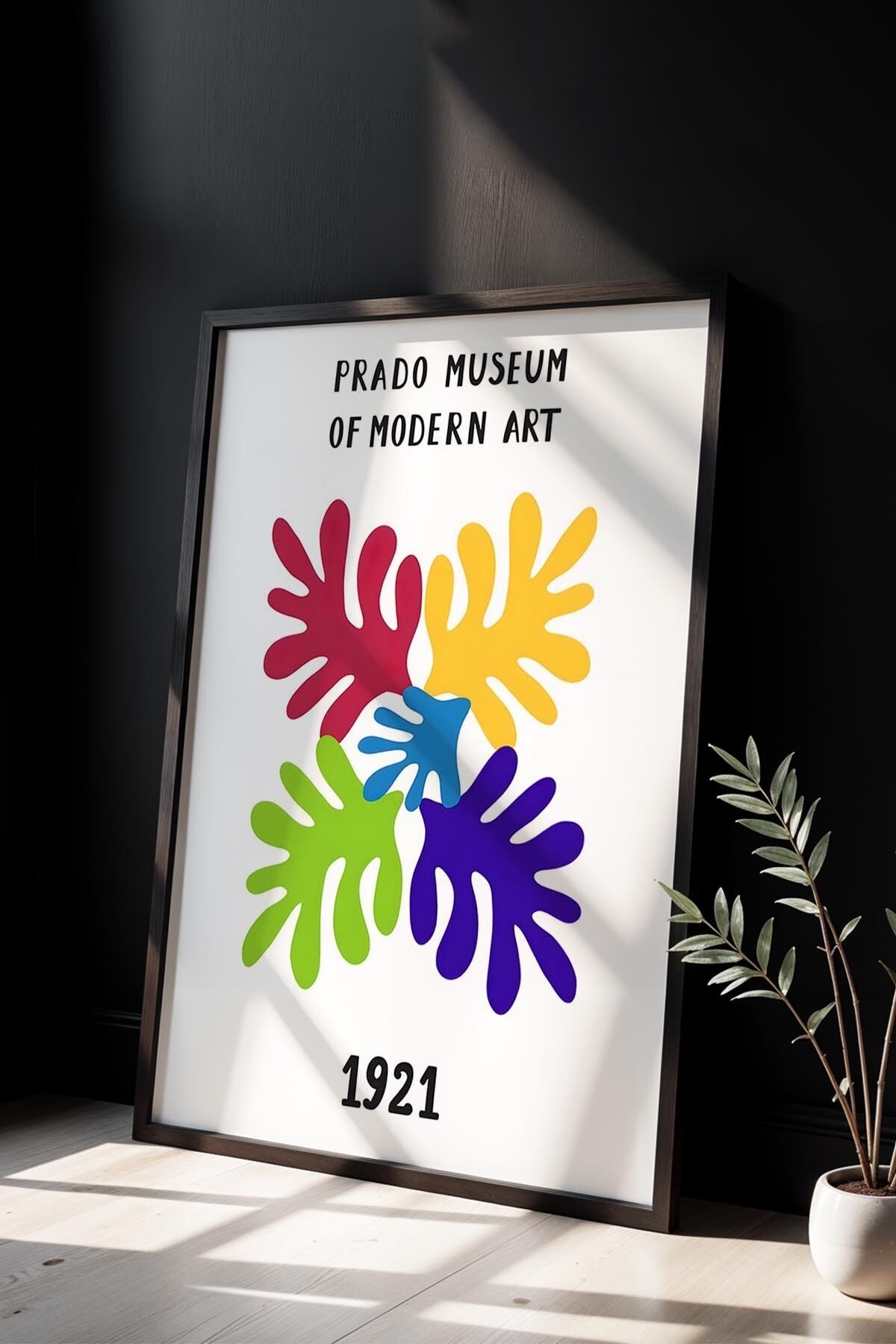 SİYAH - Botanik Serisi Canlı Renkli Çiçekli Matisse Doğal Ahşap Çerçeveli Duvar Tablosu