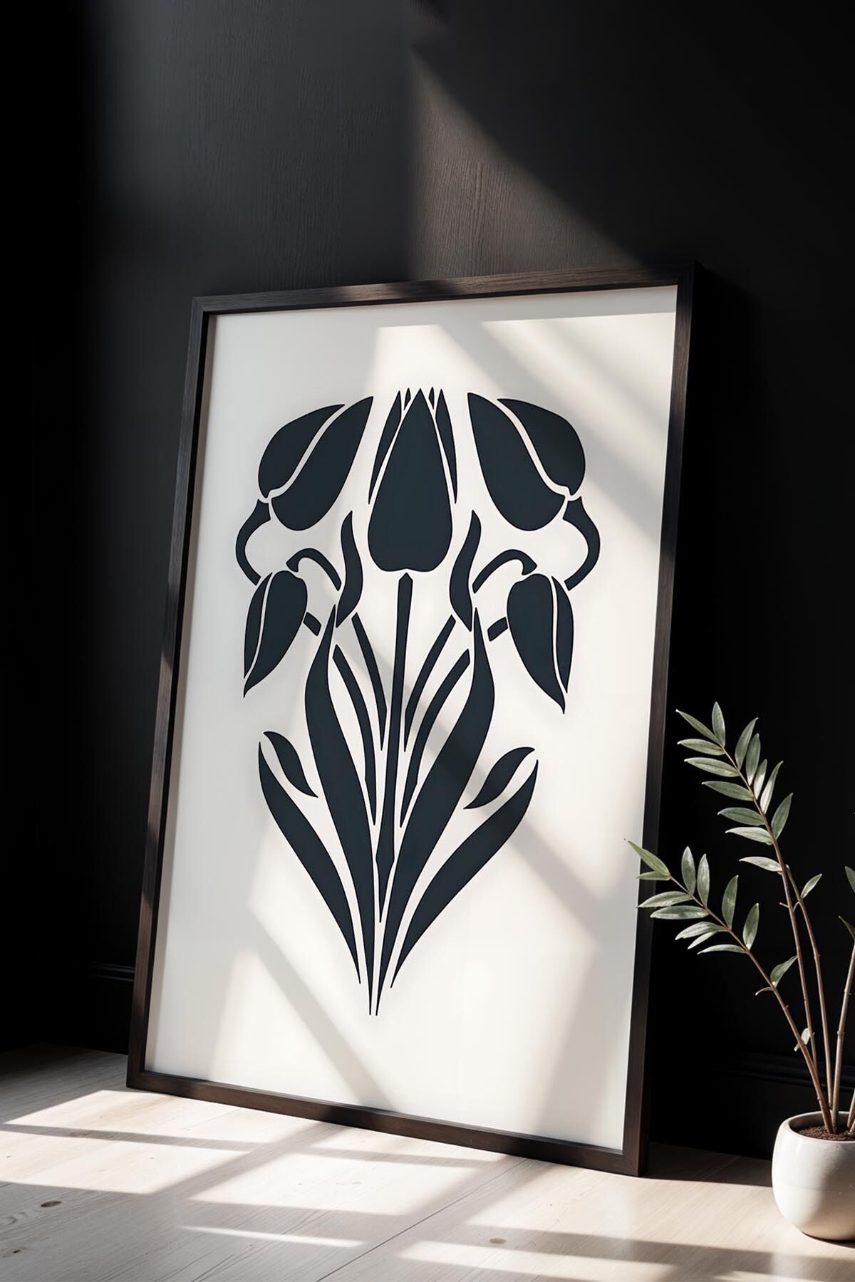 SİYAH - Botanik Serisi Çiçekli Matisse Doğal Ahşap Çerçeveli Duvar Tablosu BHM-410t