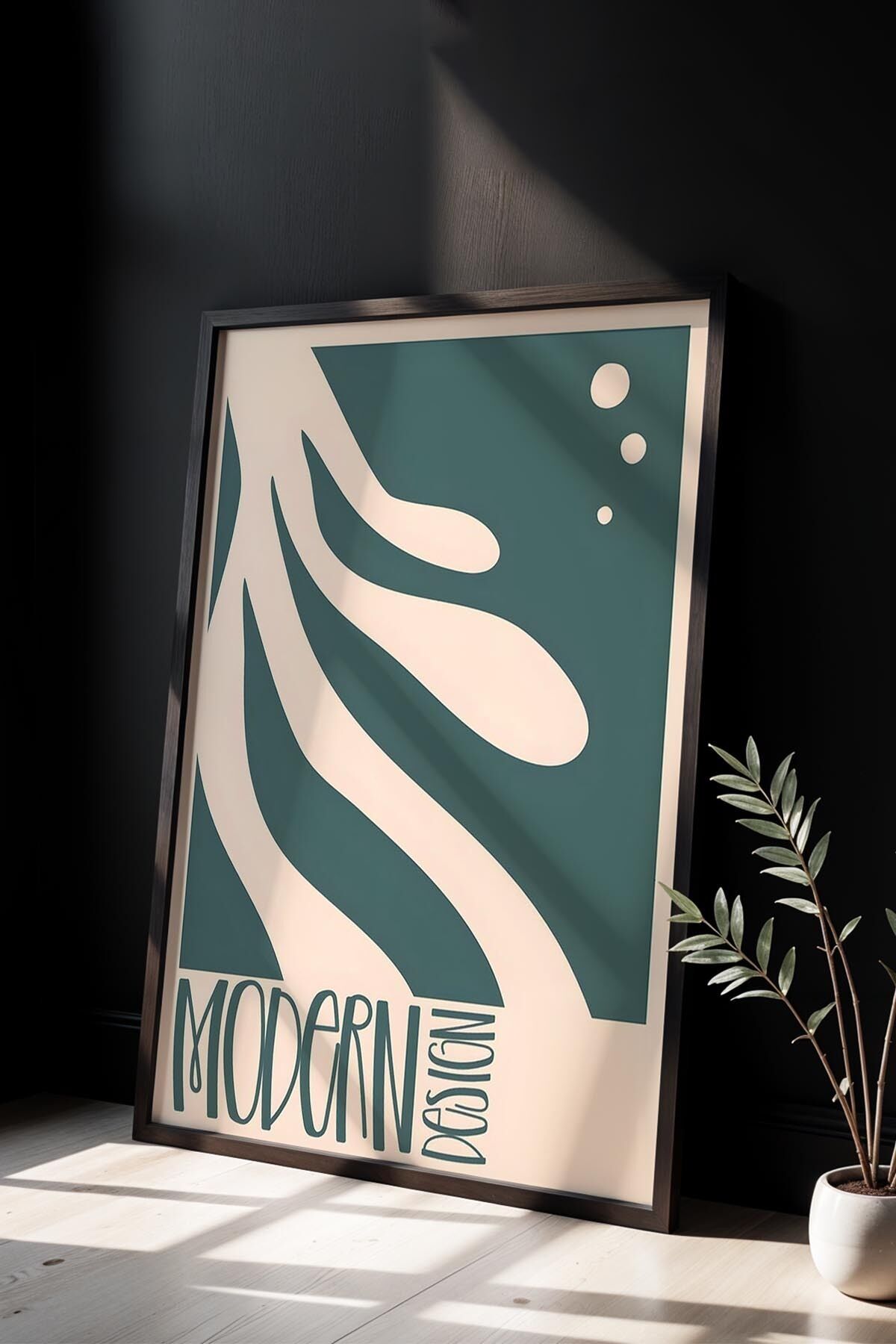 SİYAH - Botanik Serisi Çiçekli Matisse Doğal Ahşap Çerçeveli Duvar Tablosu