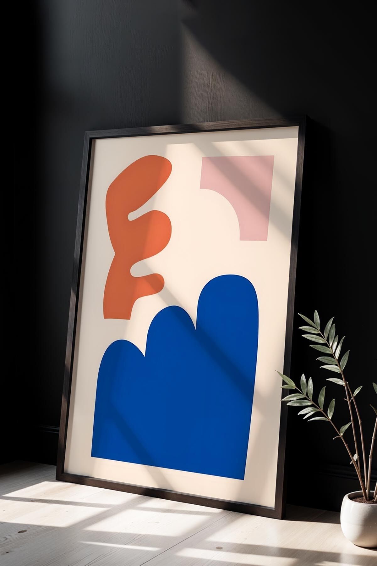 SİYAH - Botanik Serisi Çiçekli Matisse Doğal Ahşap Çerçeveli Duvar Tablosu