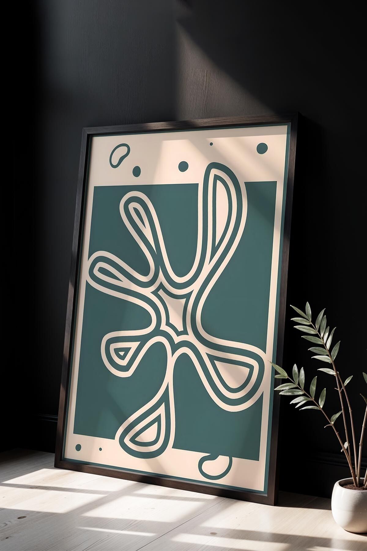 SİYAH - Botanik Serisi Çiçekli Matisse Doğal Ahşap Çerçeveli Duvar Tablosu