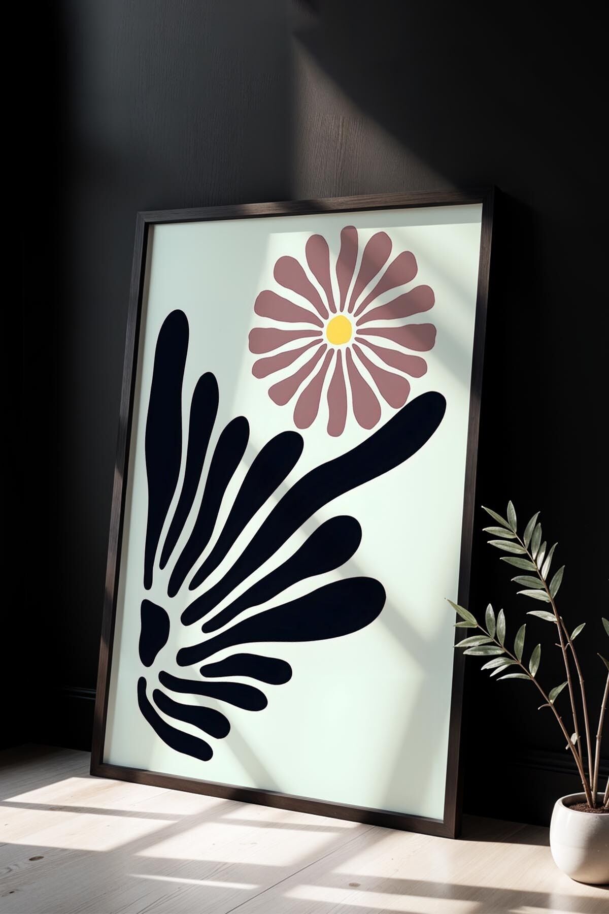 SİYAH - Botanik Serisi Gül Kurusu Çiçekli Matisse Doğal Ahşap Çerçeveli Duvar Tablosu