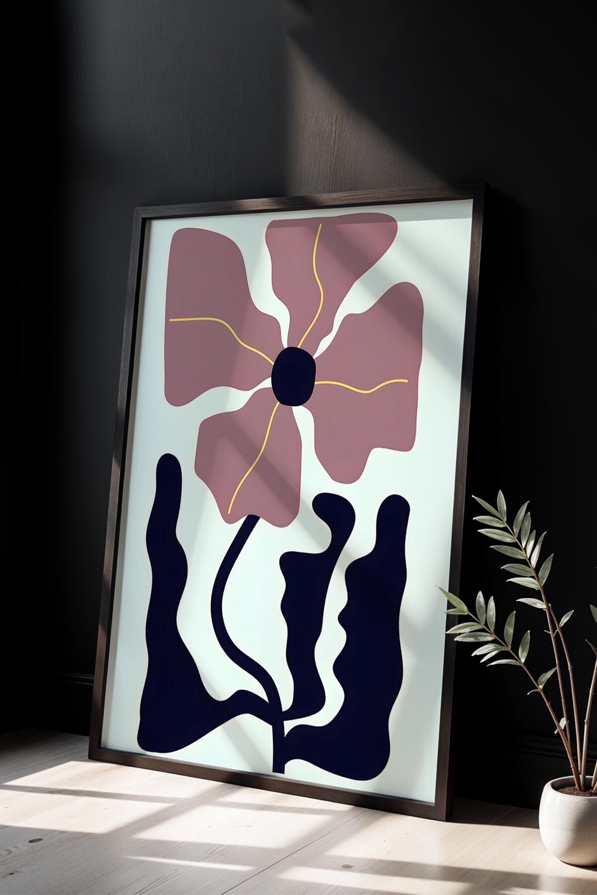SİYAH - Botanik Serisi Gül Kurusu Çiçekli Matisse Doğal Ahşap Çerçeveli Duvar Tablosu