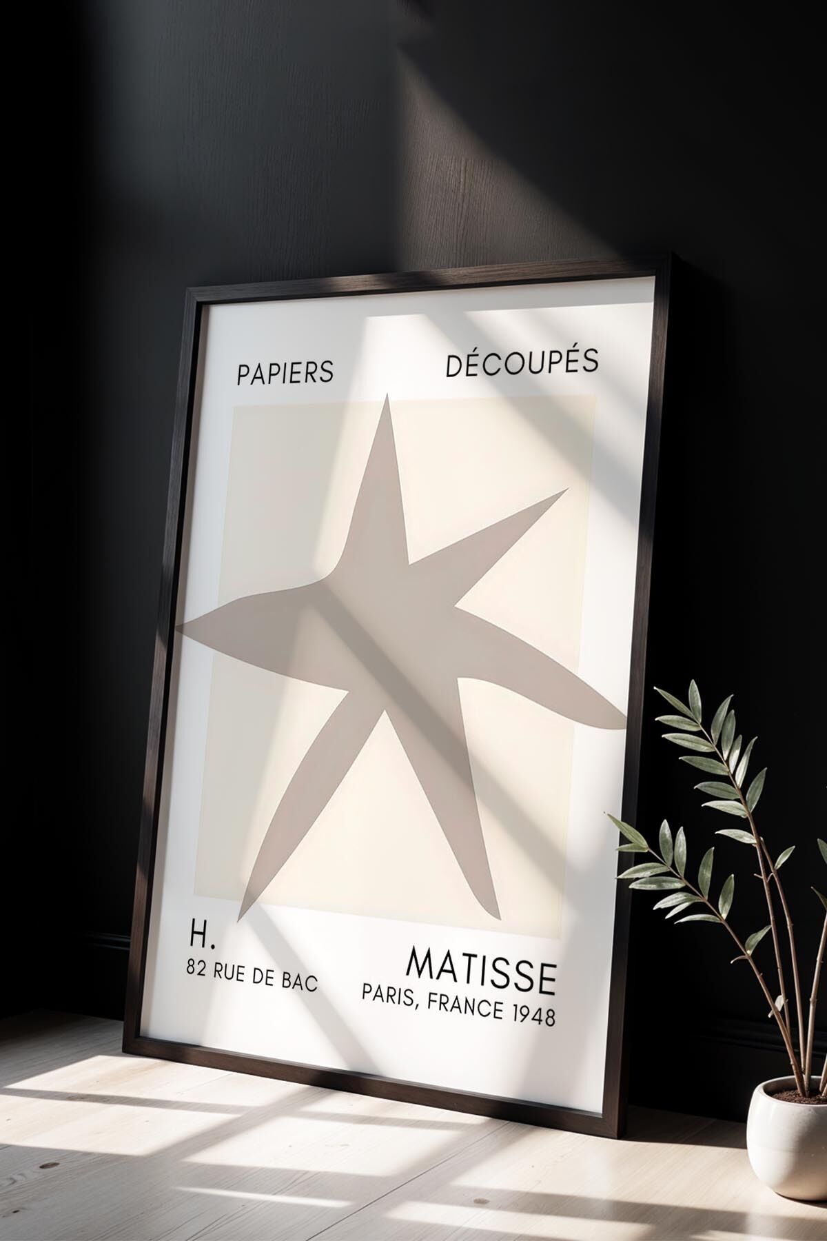 SİYAH - Botanik Serisi Kum Beji Çiçekli Matisse Doğal Ahşap Çerçeveli Duvar Tablosu