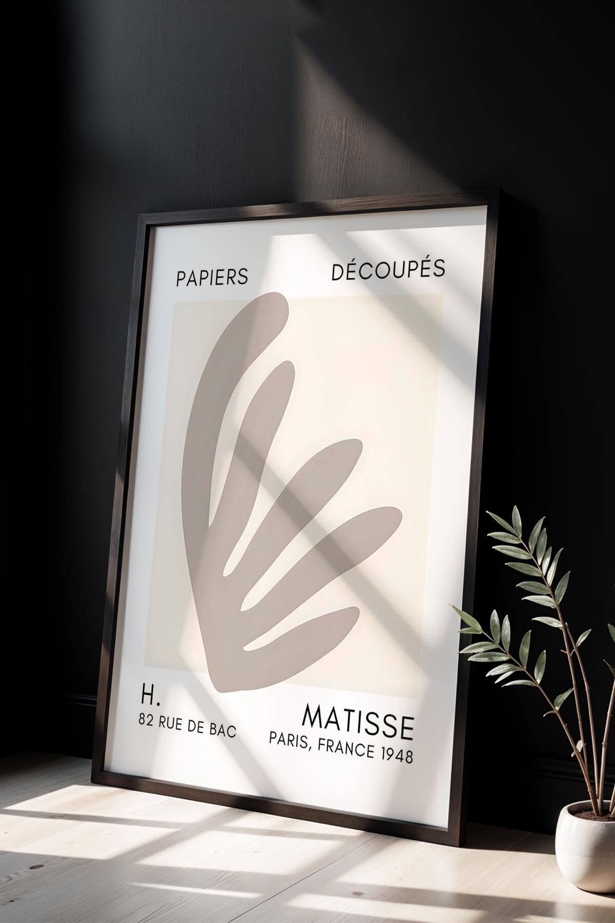 SİYAH - Botanik Serisi Kum Beji Çiçekli Matisse Doğal Ahşap Çerçeveli Duvar Tablosu BHM-151t