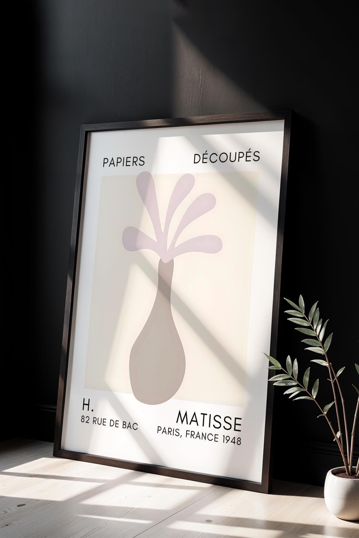 SİYAH - Botanik Serisi Kum Beji Çiçekli Matisse Doğal Ahşap Çerçeveli Duvar Tablosu