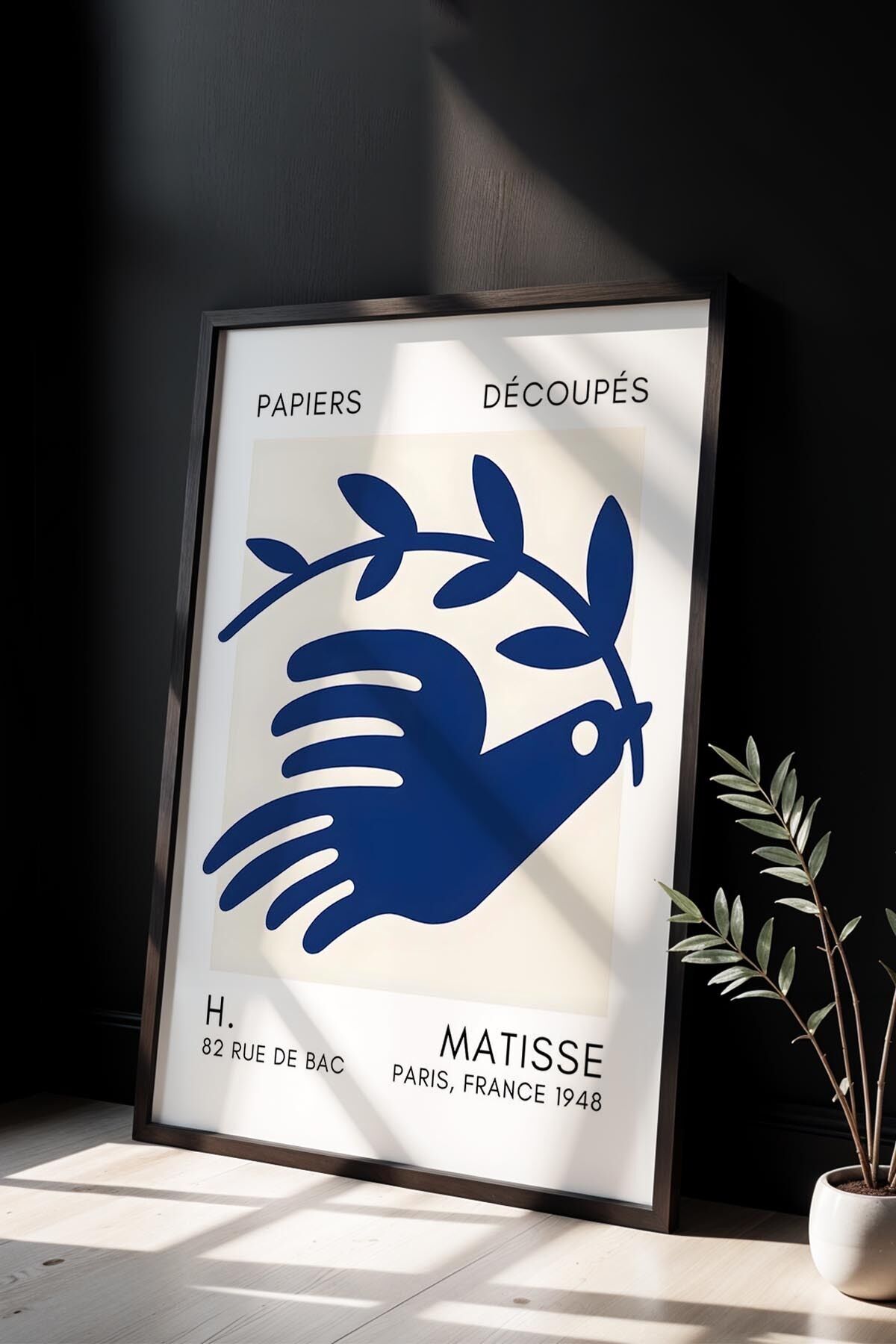 SİYAH - Botanik Serisi Lacivert Çiçekli Matisse Doğal Ahşap Çerçeveli Duvar Tablosu