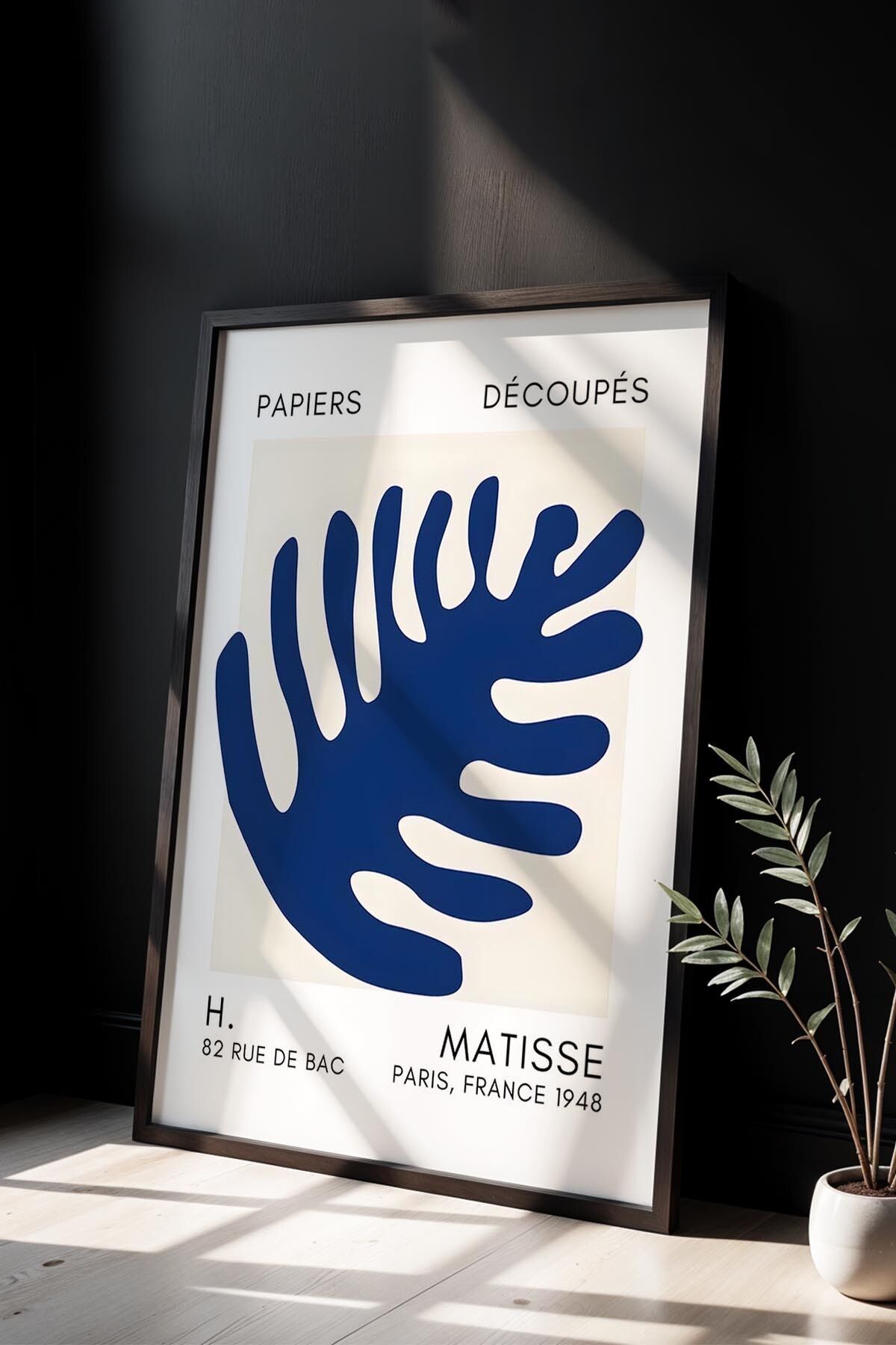 SİYAH - Botanik Serisi Lacivert Çiçekli Matisse Doğal Ahşap Çerçeveli Duvar Tablosu