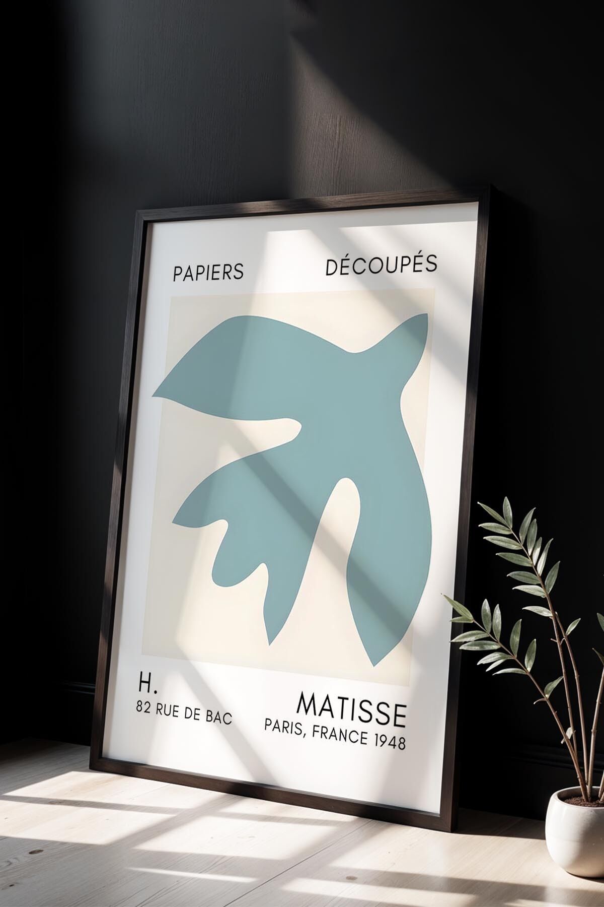 SİYAH - Botanik Serisi Mint Yeşili Çiçekli Matisse Doğal Ahşap Çerçeveli Duvar Tablosu