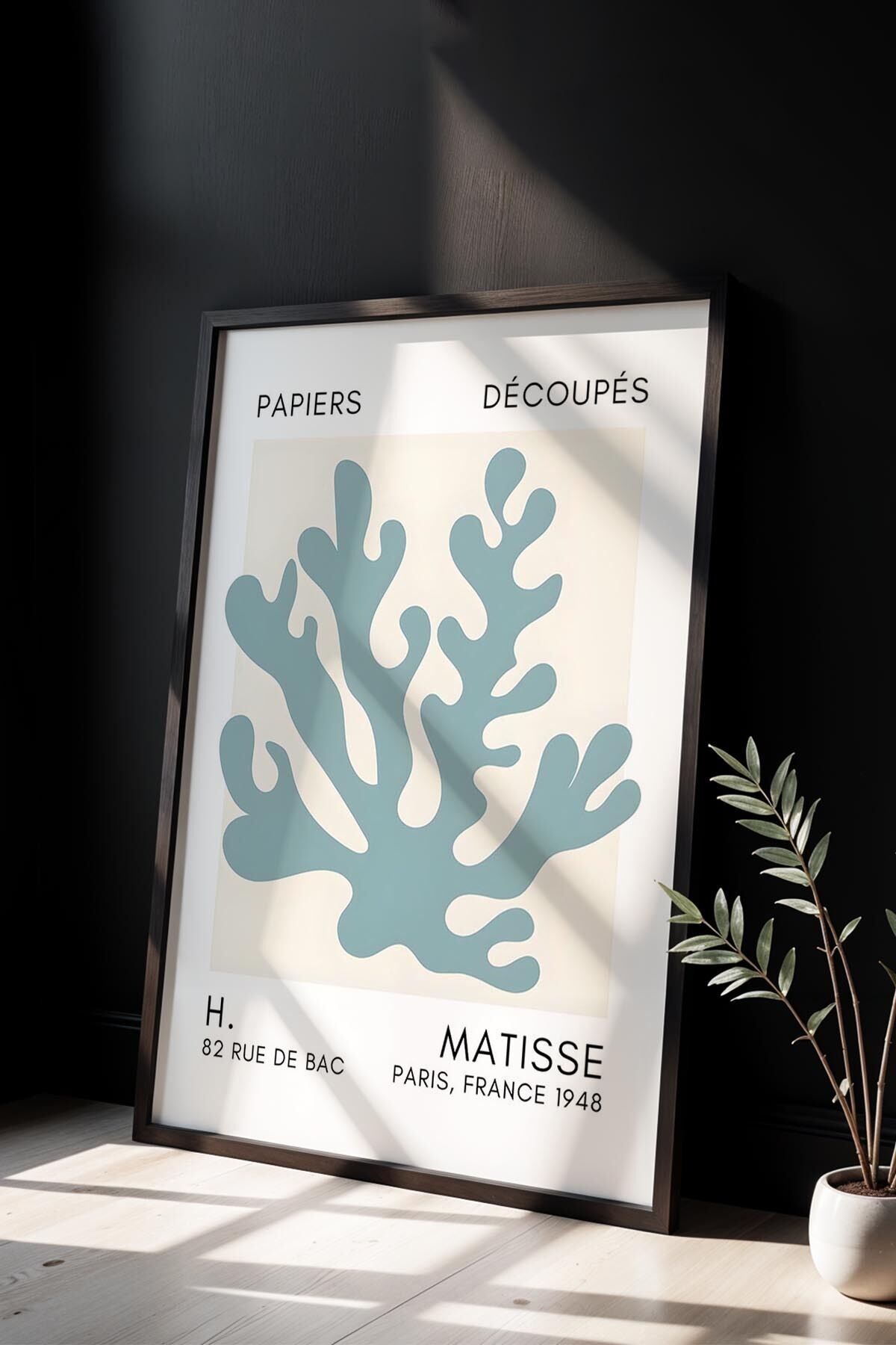 SİYAH - Botanik Serisi Mint Yeşili Çiçekli Matisse Doğal Ahşap Çerçeveli Duvar Tablosu