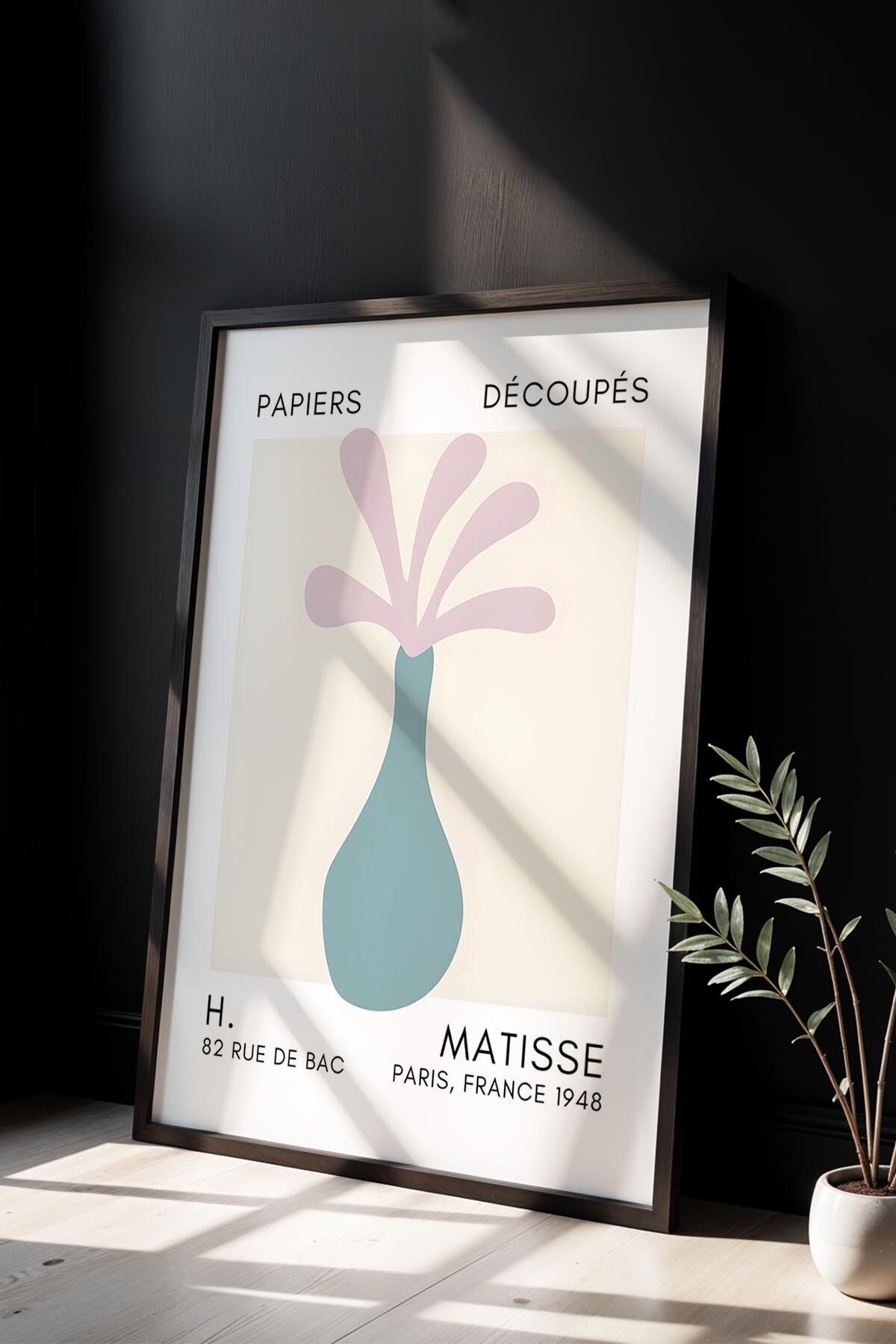SİYAH - Botanik Serisi Mint Yeşili Çiçekli Matisse Doğal Ahşap Çerçeveli Duvar Tablosu