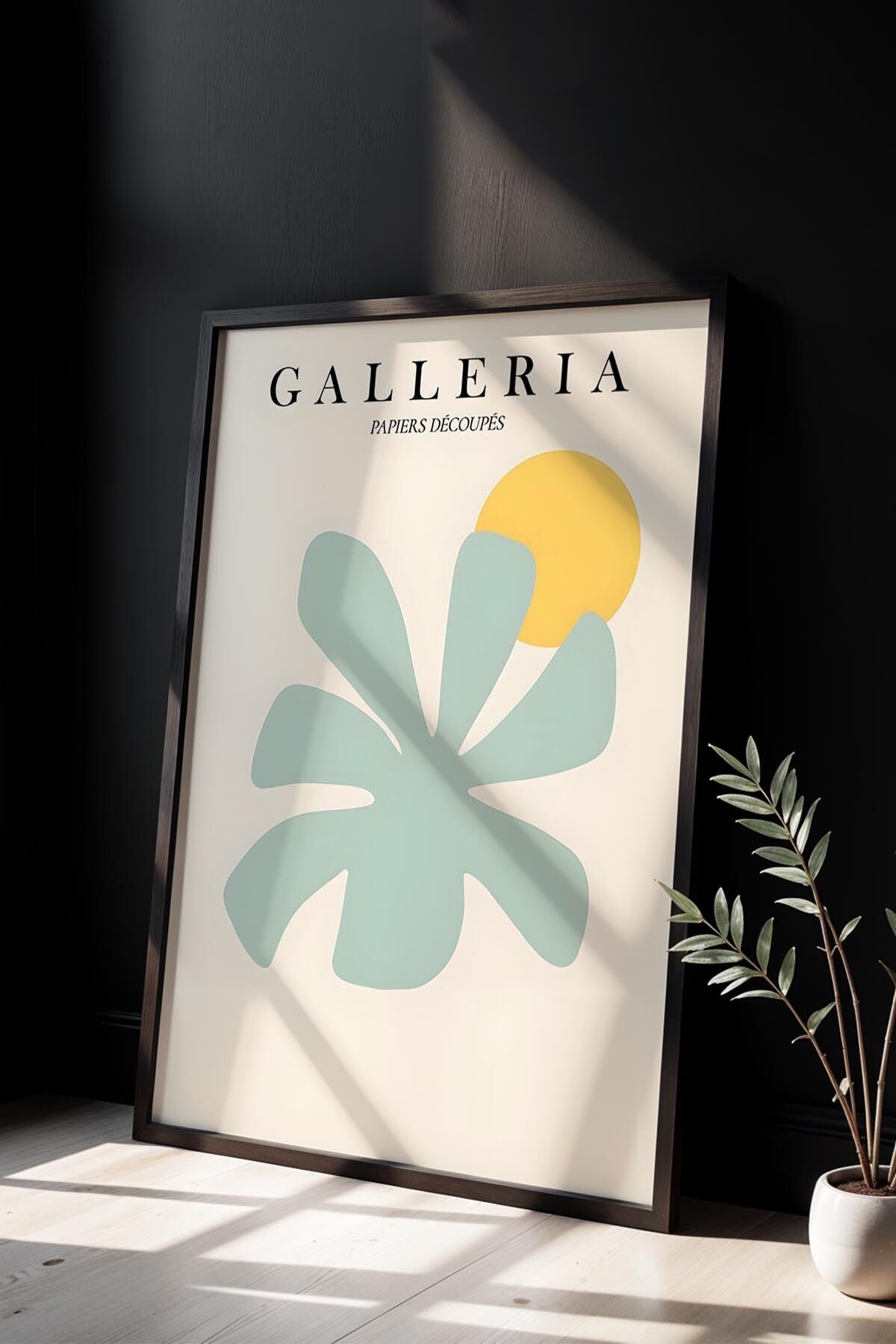 SİYAH - Botanik Serisi Mint Yeşili Çiçekli Matisse Doğal Ahşap Çerçeveli Duvar Tablosu BHM-167t