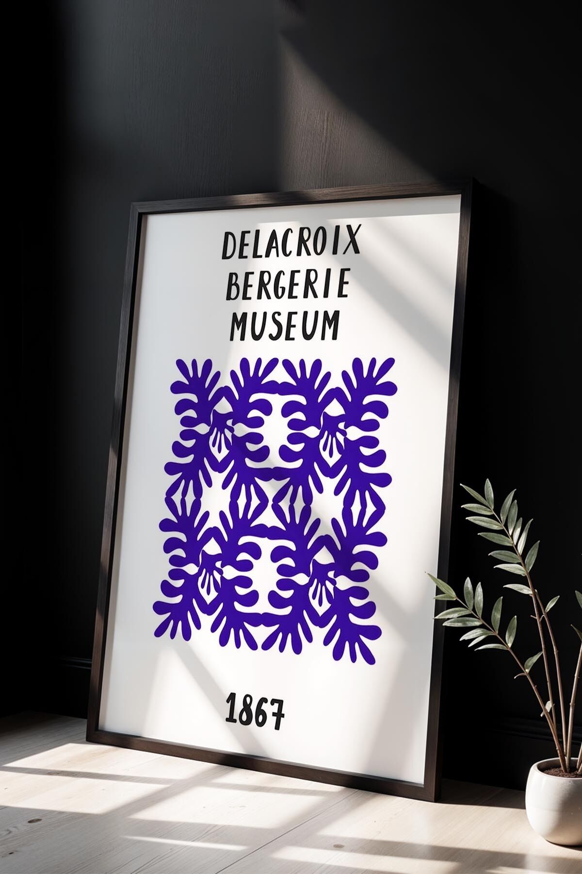 SİYAH - Botanik Serisi Mor Çiçekli Matisse Doğal Ahşap Çerçeveli Duvar Tablosu