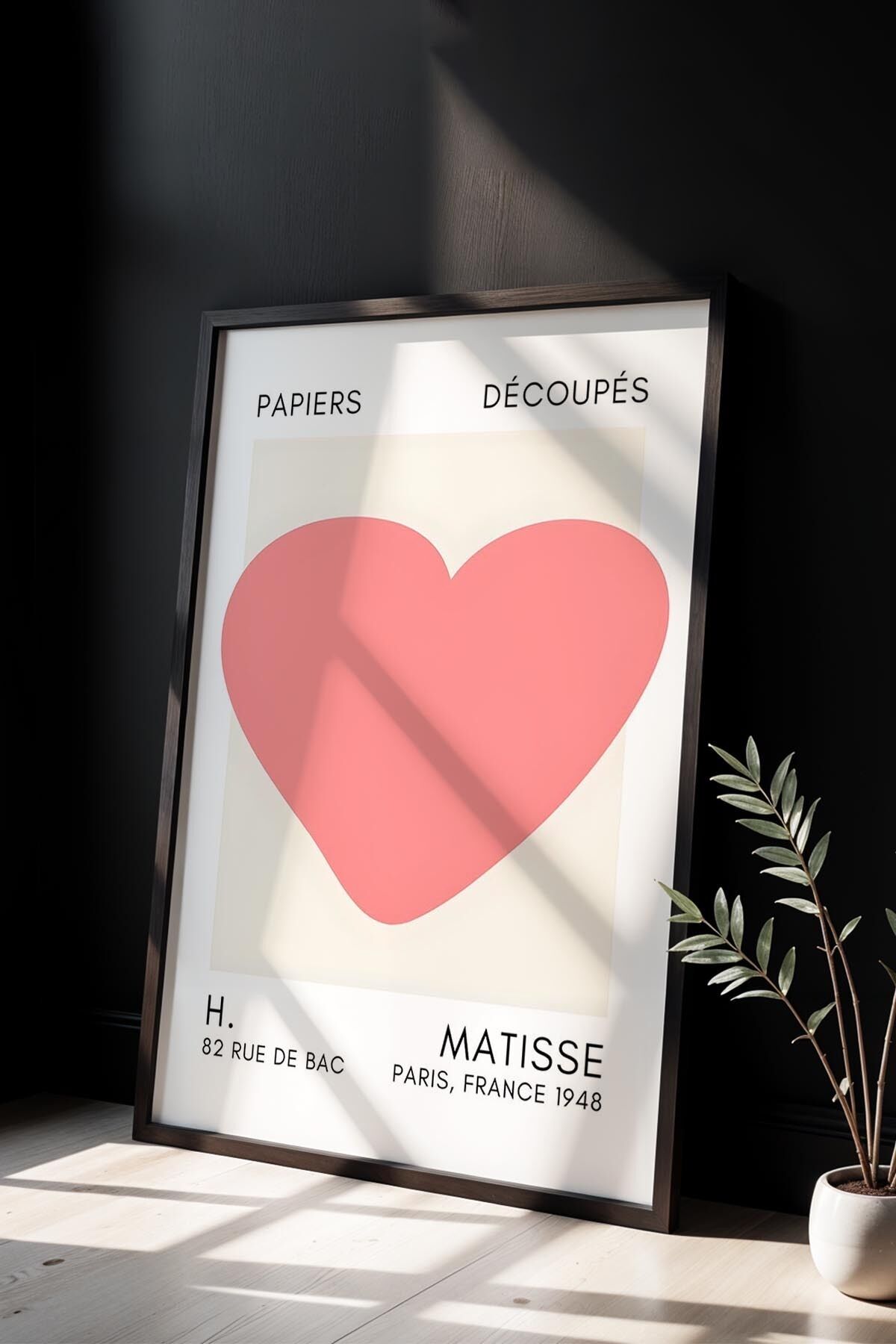 SİYAH - Botanik Serisi Toz Pembe Çiçekli Matisse Doğal Ahşap Çerçeveli Duvar Tablosu
