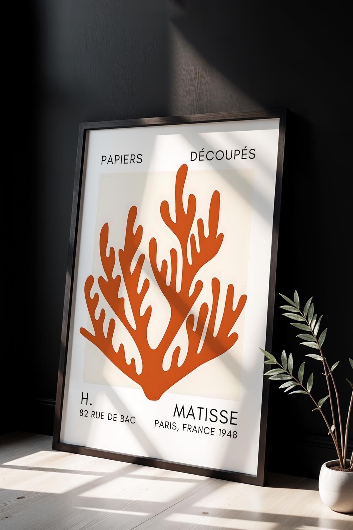 SİYAH - Botanik Serisi Turuncu Çiçekli Matisse Doğal Ahşap Çerçeveli Duvar Tablosu