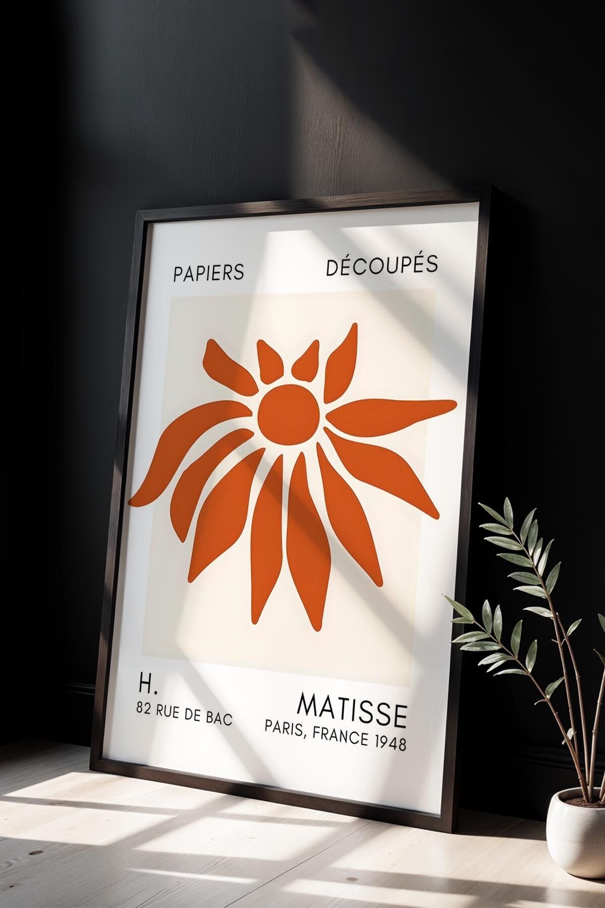 SİYAH - Botanik Serisi Turuncu Çiçekli Matisse Doğal Ahşap Çerçeveli Duvar Tablosu