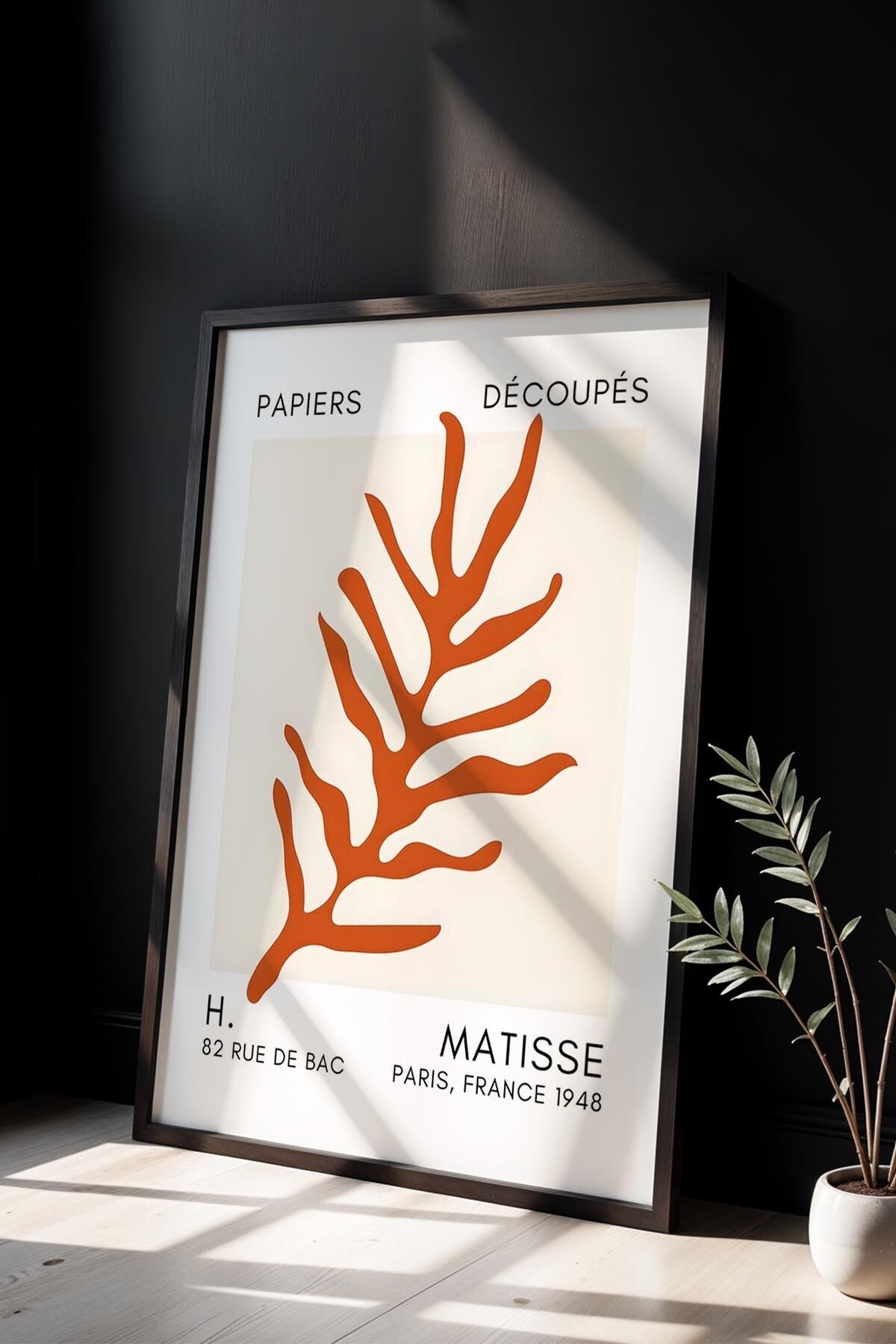 SİYAH - Botanik Serisi Turuncu Çiçekli Matisse Doğal Ahşap Çerçeveli Duvar Tablosu BHM-292t