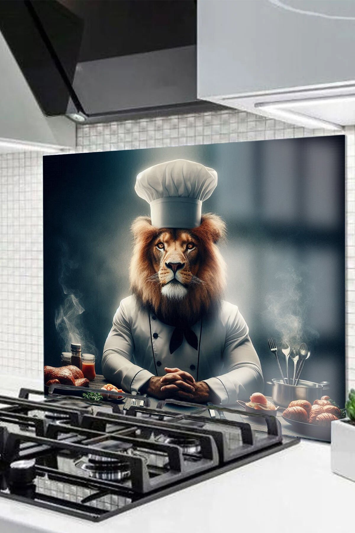 Siyah - Cam Ocak Arkası Koruyucu Tezgah Ankastre Arkası Koruyucu Kırılmaz Isıya Dayanıklı Cam Aşçı Aslan