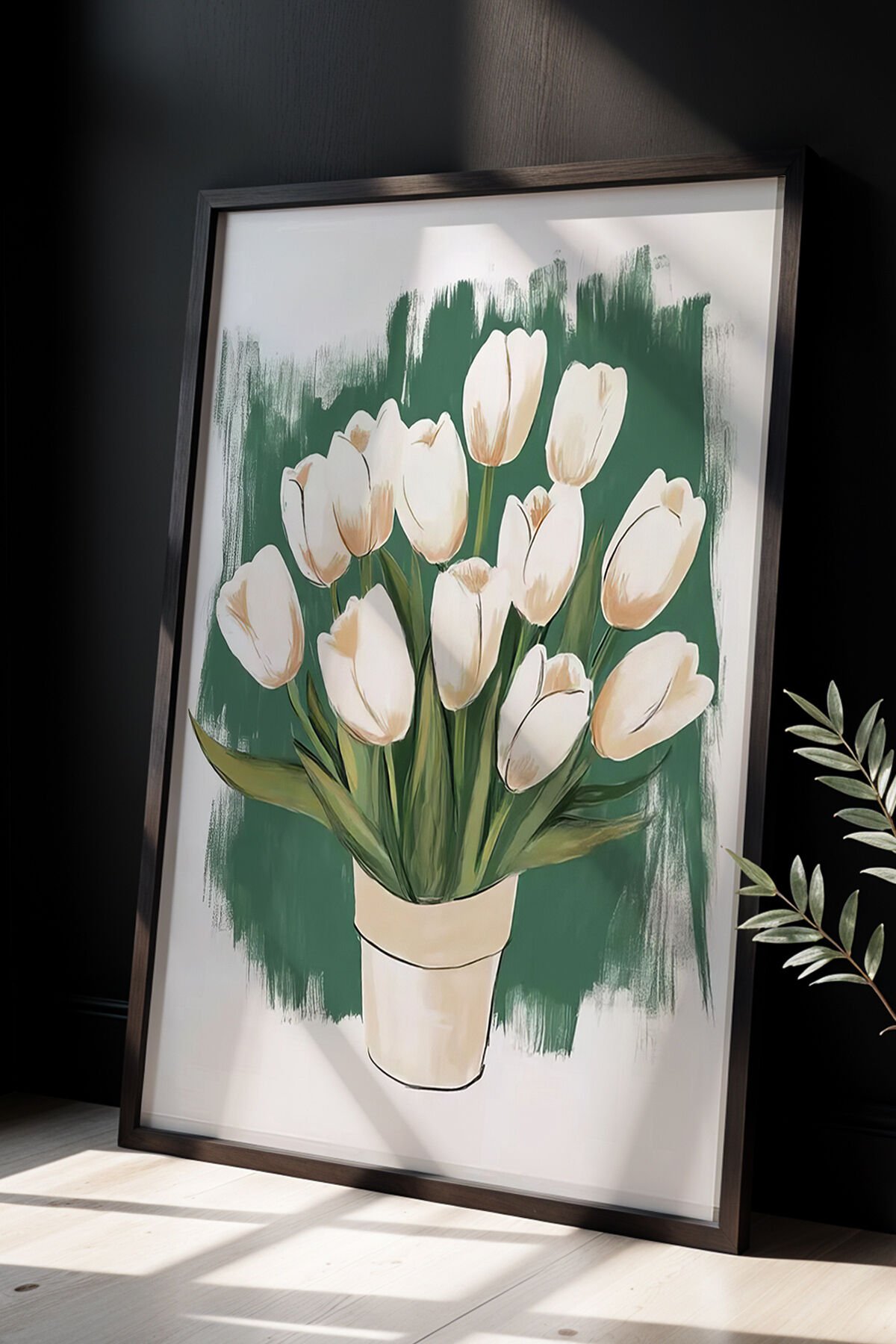 SİYAH - Çiçek Buketi Duvar Sanatı Ahşap Çerçeveli Duvar Tablosu
