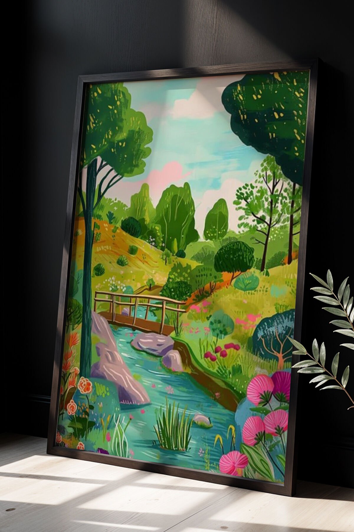 SİYAH - Çiçek Sanat Eseri - Soyut Çiçek Bahçesi Doğal Ahşap Çerçeveli Duvar tablosu