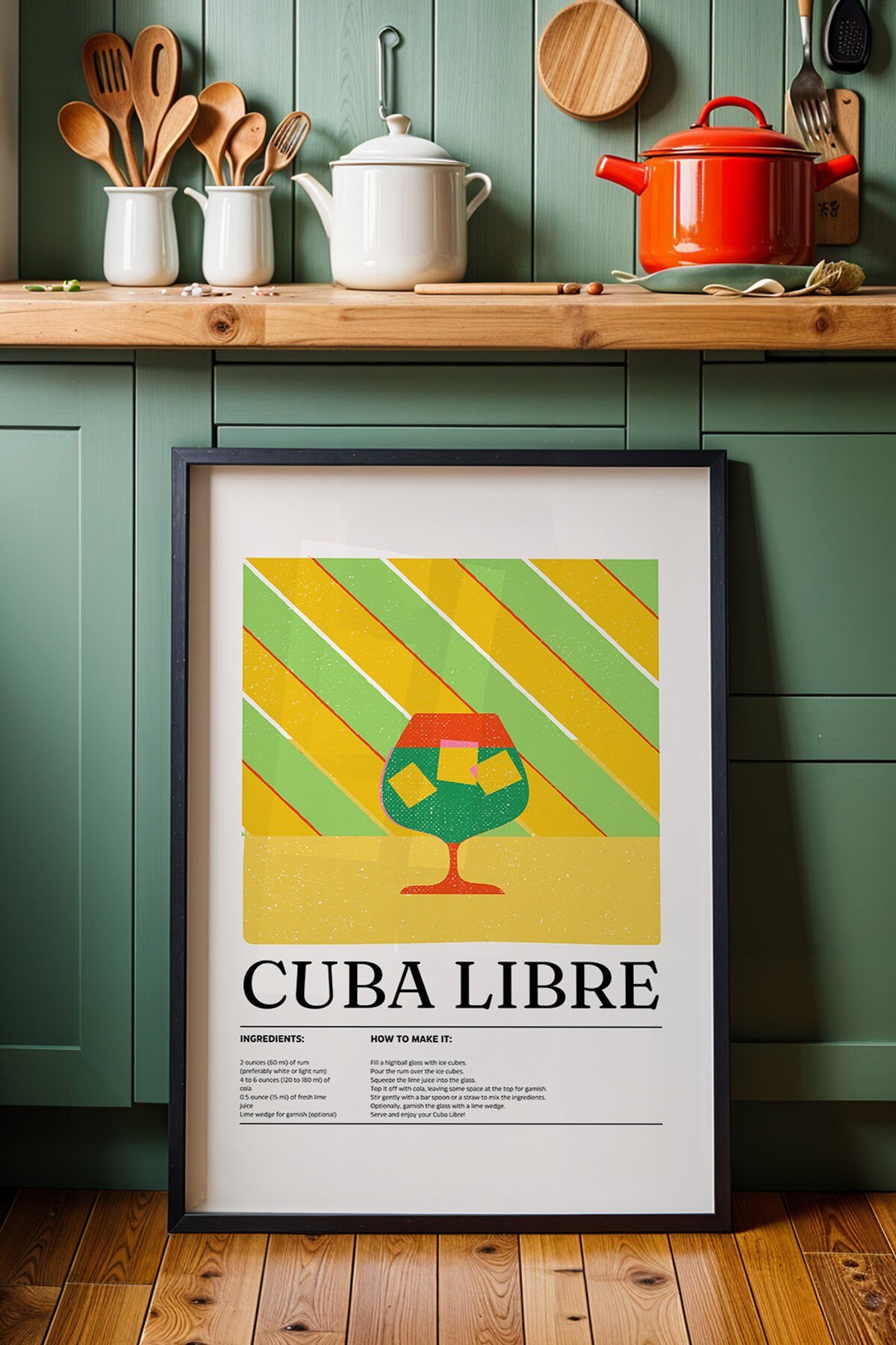 SİYAH - Cuba Libre Kokteyl Tarifi Mutfak Ahşap Çerçeveli Duvar Tablosu