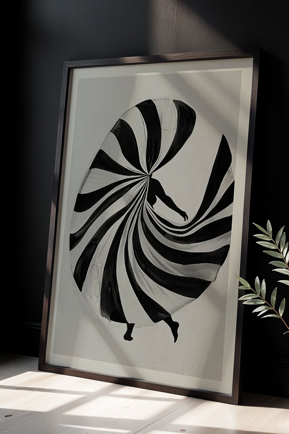 SİYAH - Dans Eden Soyut kadın, Minimalist Siyah Beyaz Sanat Ahşap Çerçeveli Duvar Tablosu