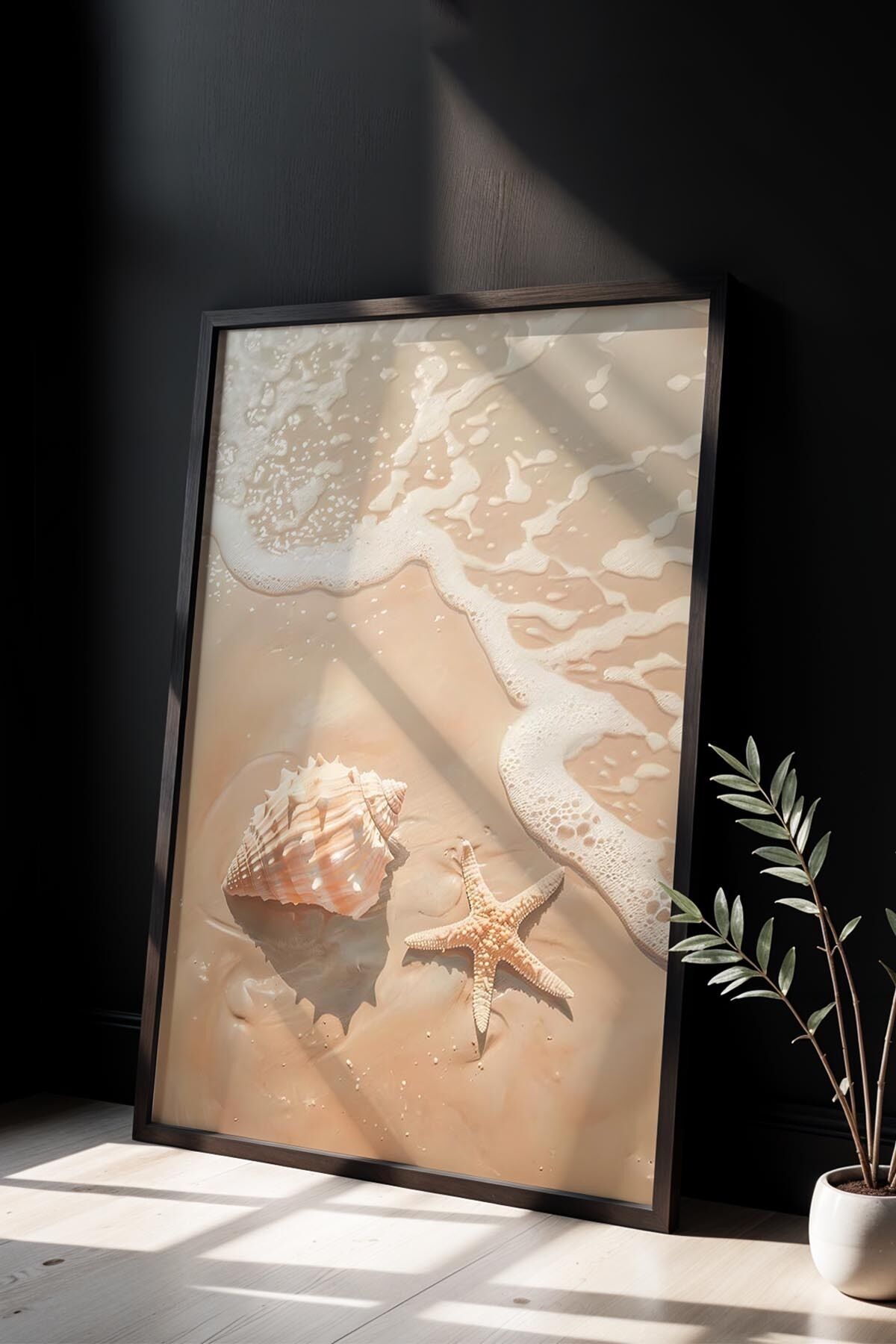 SİYAH - Doğa Temalı Kum Renkli Maksimalist Sanatı Ahşap Çerçeveli Duvar Tablosu