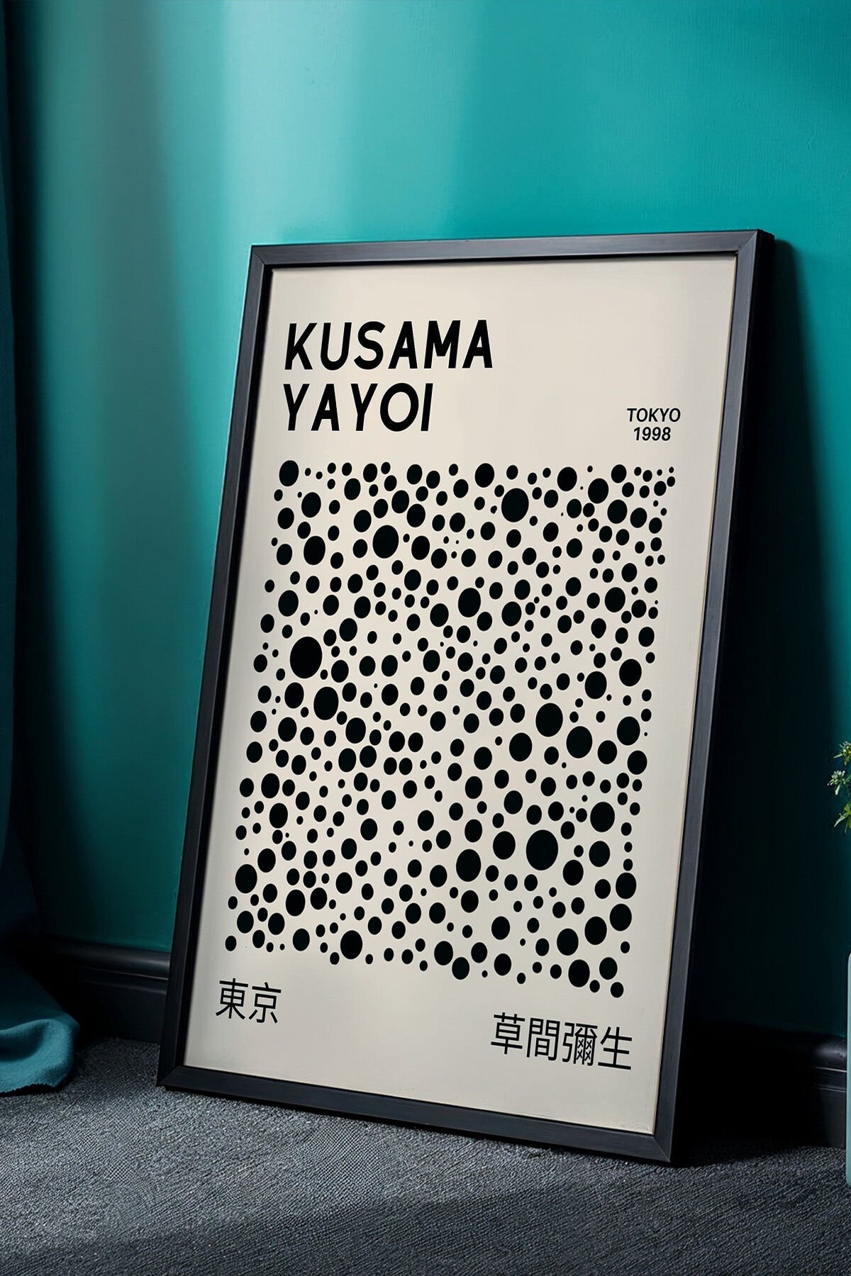 SİYAH - Doğal Ahşap Çerçeveli Noktasal Minimalizm Japandi Tablo