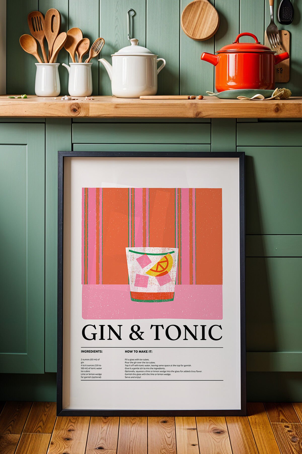SİYAH - Gin Tonic Tarifi Mutfak Ahşap Çerçeveli Duvar Tablosu