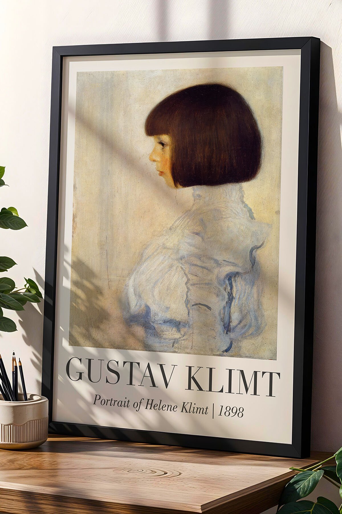 SİYAH - Gustav Klimt Helene Klimt'in Portresi 1898 Vintage Doğal Ahşap Çerçeveli Duvar Tablosu