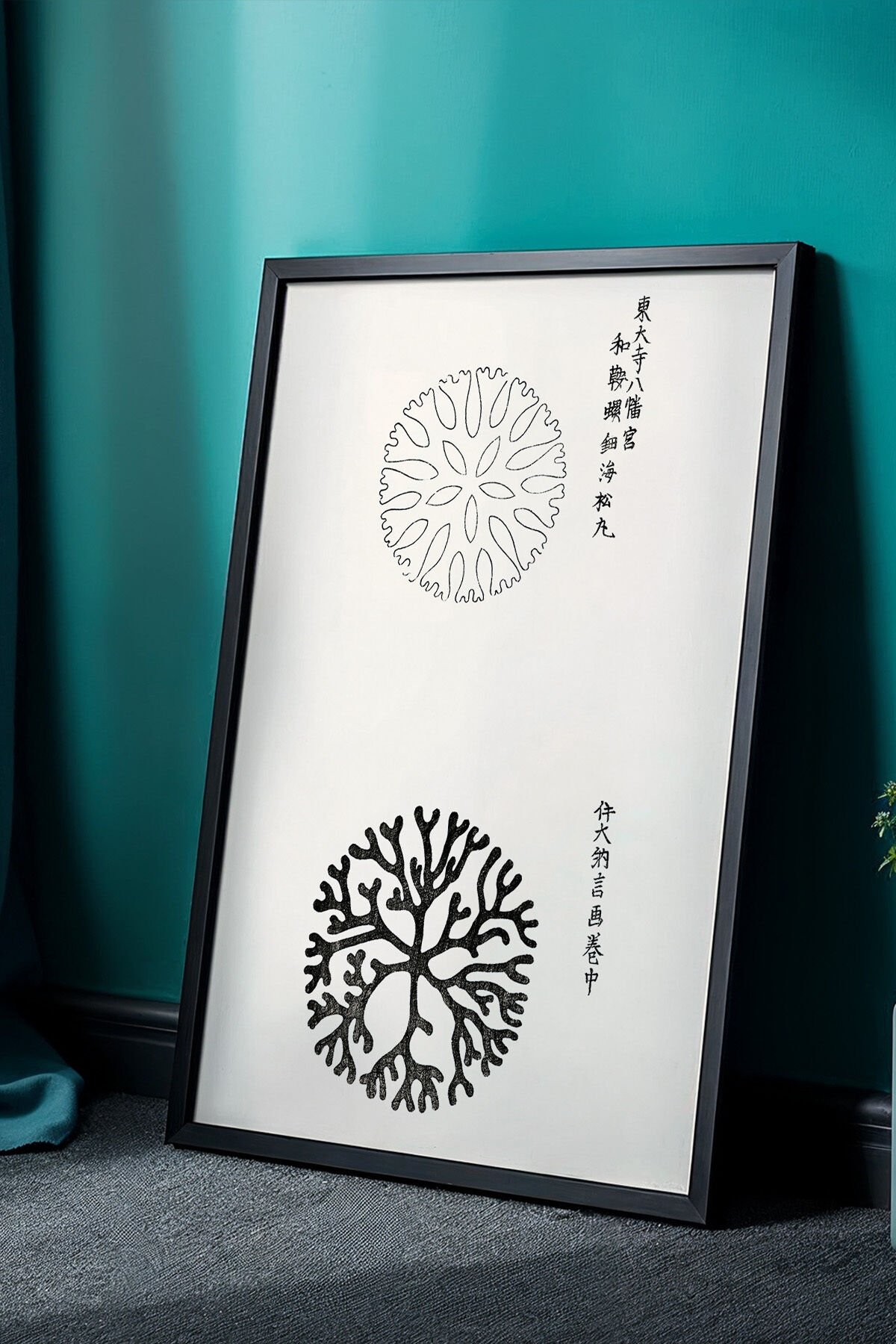 SİYAH - Japandi Serisi Doğal Ahşap Çerçeveli Tablo – Geleneksel Japon Mimari Deseni