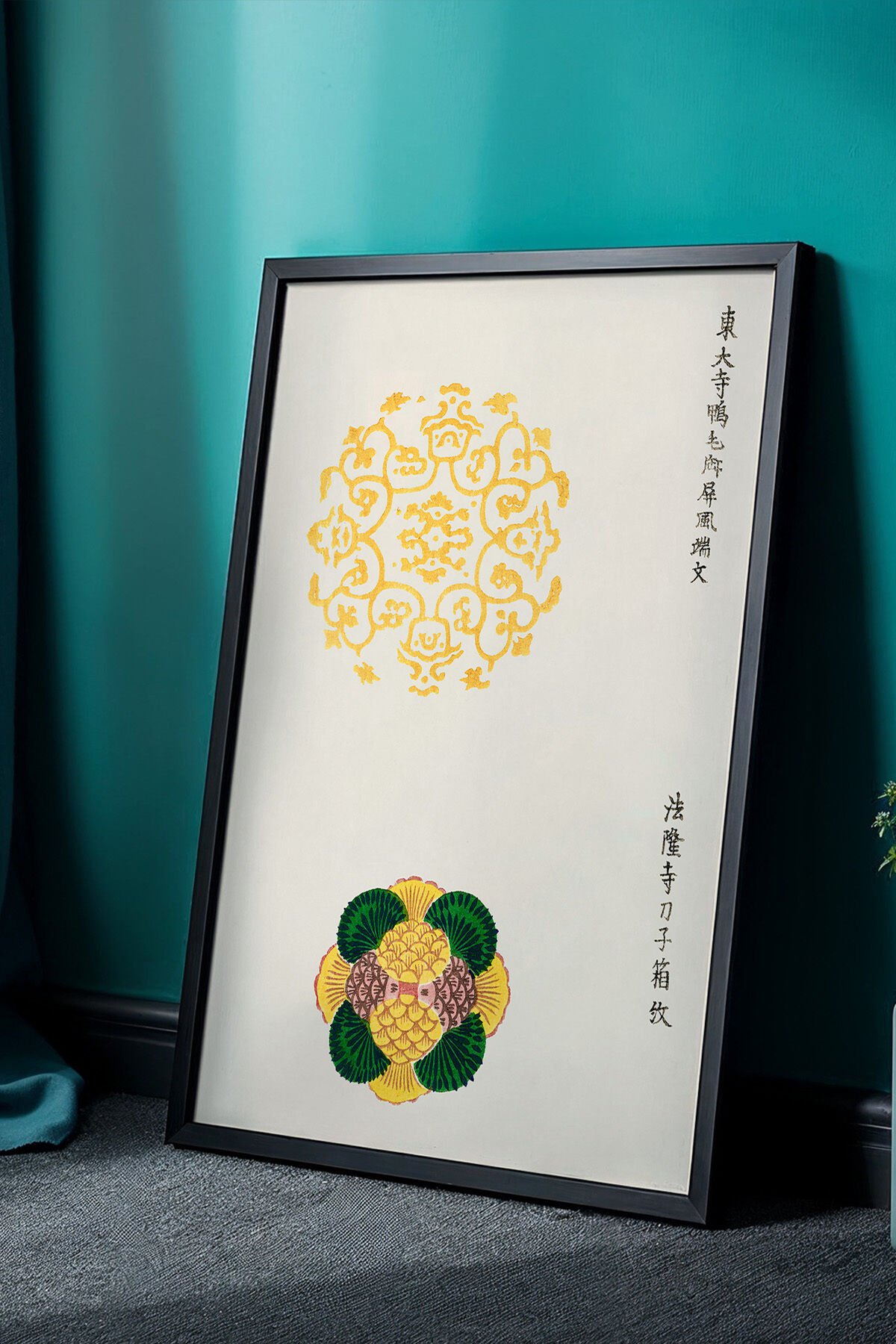 SİYAH - Japandi Serisi Doğal Ahşap Çerçeveli Tablo - Geleneksel Japon Motifleri
