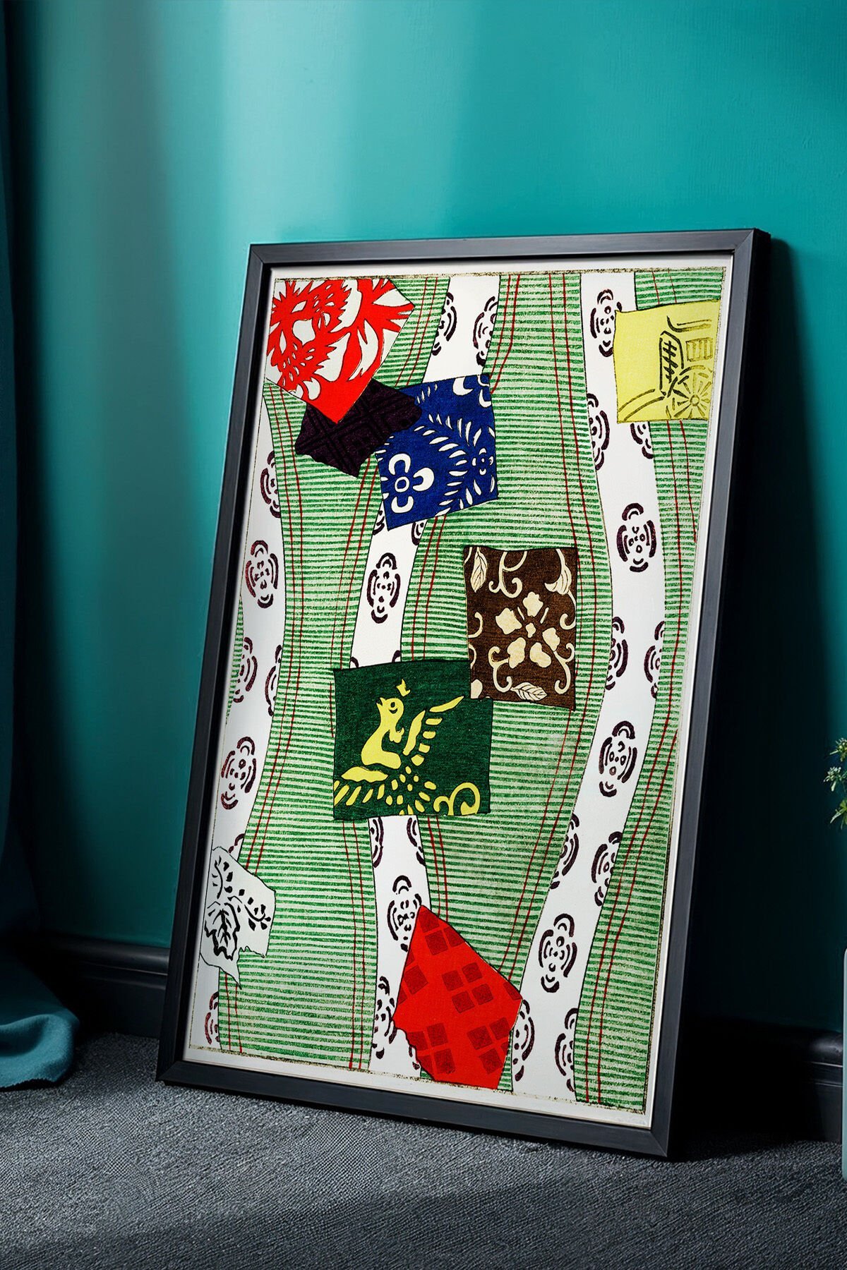 SİYAH - Japandi Serisi Doğal Ahşap Çerçeveli Tablo - Minimalist Geometrik Desen
