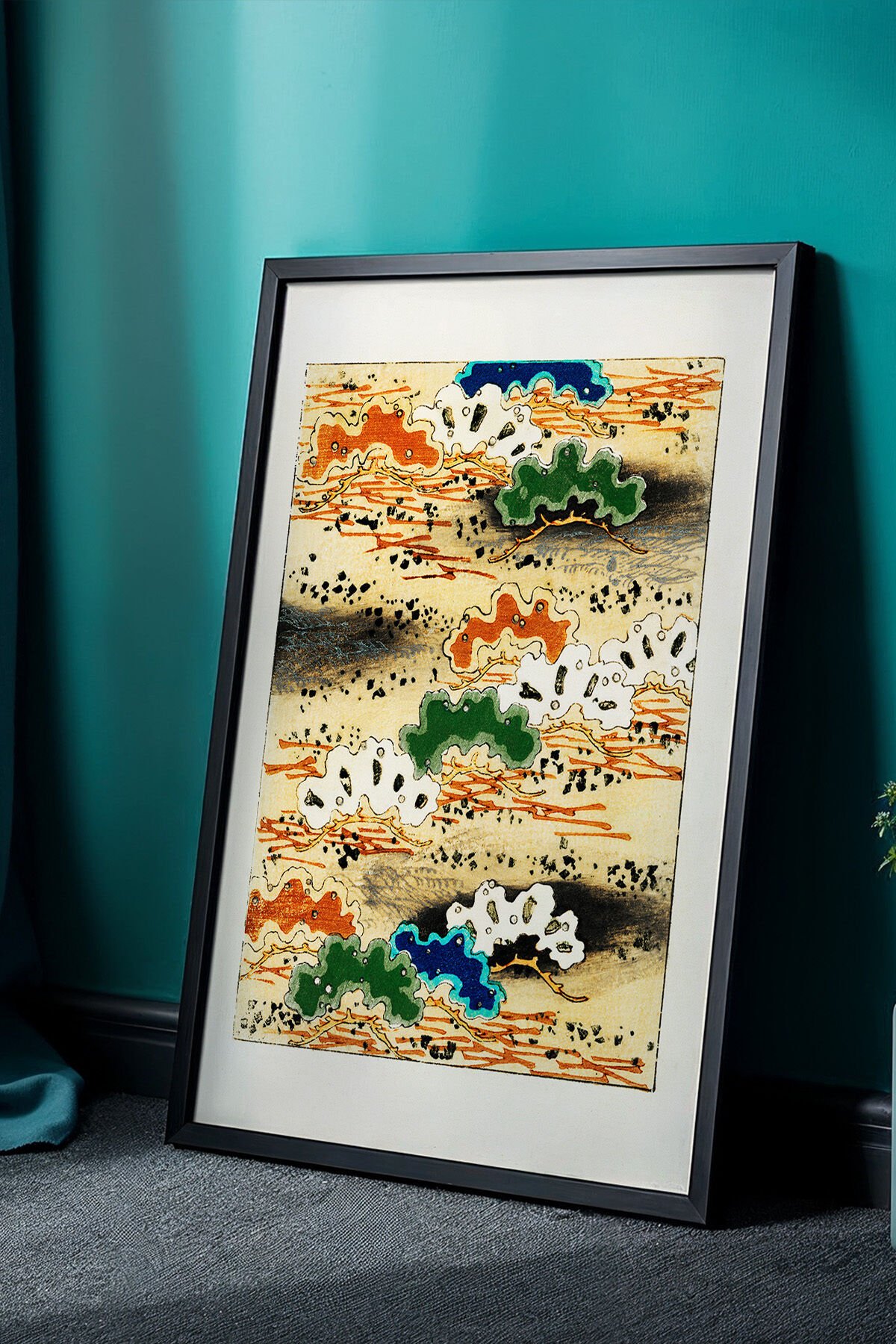 SİYAH - Japandi Serisi Doğal Ahşap Çerçeveli Tablo - Vintage Japon Estetiği