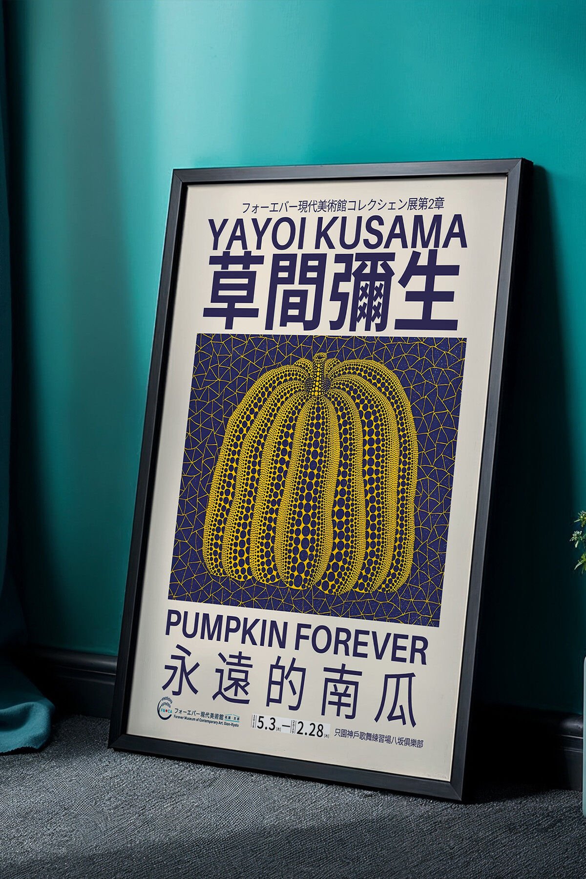 SİYAH - Japon Sanatıyla Modern Doku: Sonsuz Kabak Temalı Doğal Ahşap Çerçeveli Minimalist Tablo