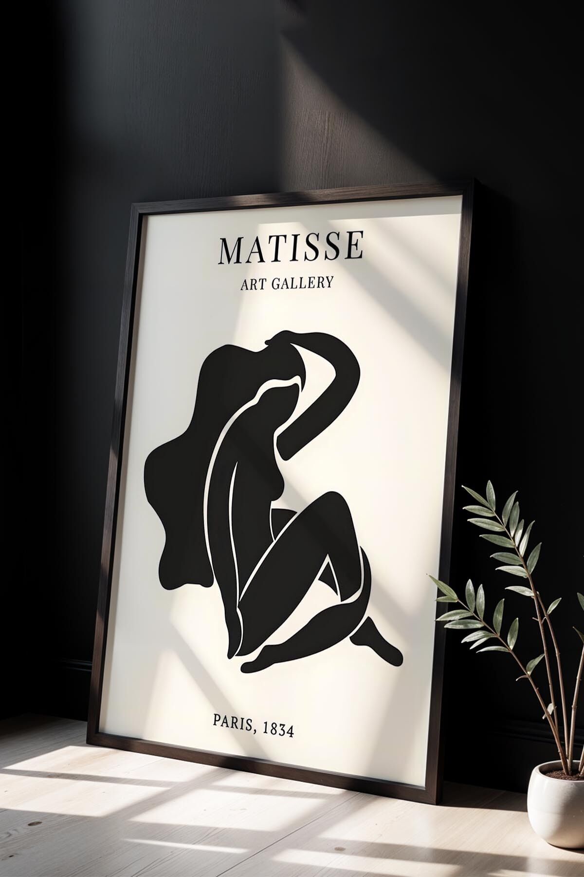 SİYAH - Kadın Portresi Modern Soyut Sanatı Bohem Tarzı Matisse Doğal Ahşap Çerçeveli Duvar Tablosu